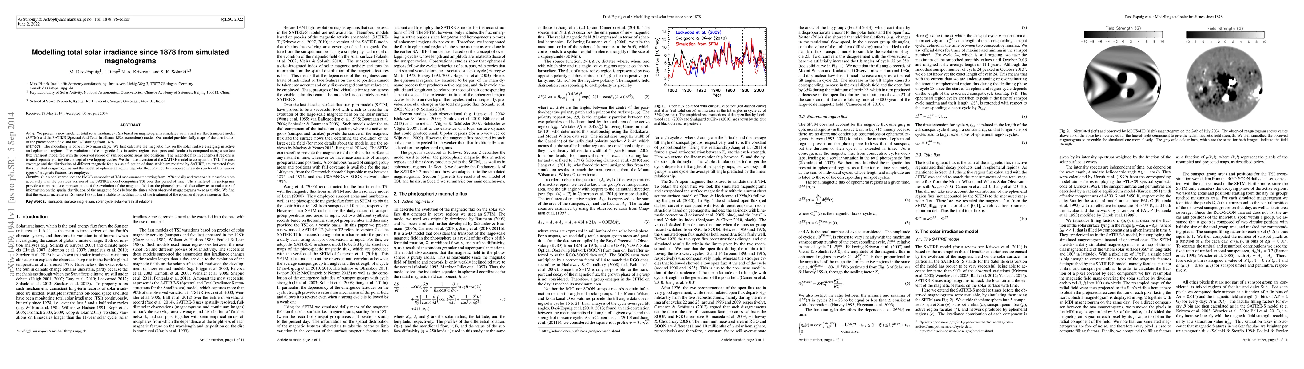 This paper introduces a new model for total solar irradiance (TSI) based on simulated magnetograms from a surface flux transport model and the SATIRE model, providing daily TSI maps since 1878. The model accurately reproduces TSI measurements from 1978 and offers a more realistic representation of the solar magnetic field evolution.
