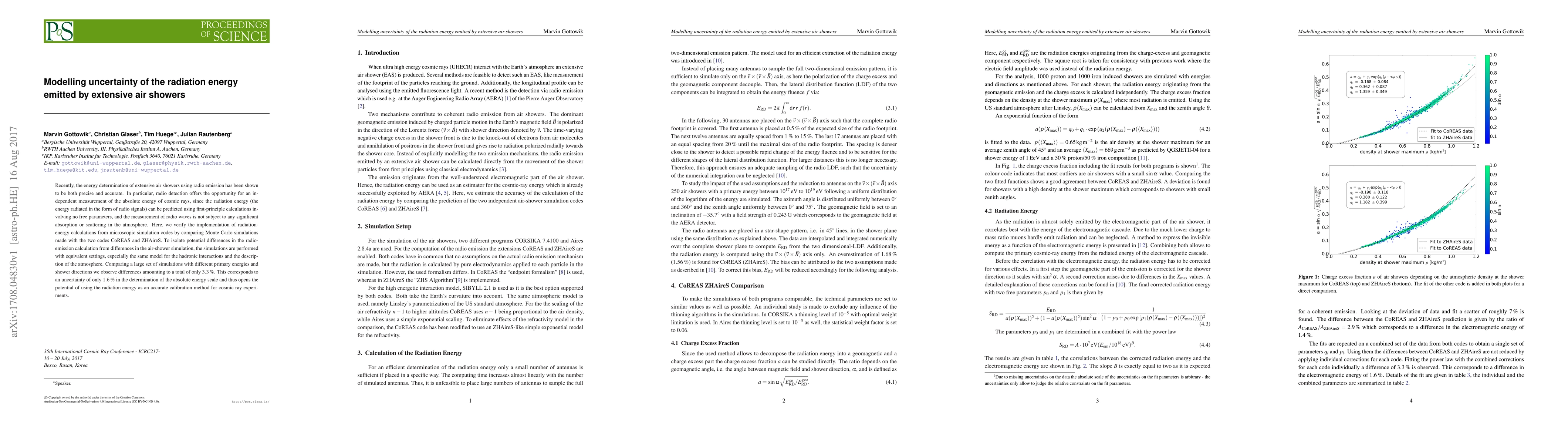 This study validates the accuracy of radiation-energy calculations for extensive air showers using Monte Carlo simulations with CoREAS and ZHAireS codes. With equivalent settings, the simulations show only a 3.3% difference, translating to a 1.6% uncertainty in the absolute energy scale determination, suggesting the potential of radio emission as an accurate calibration method for cosmic ray experiments.