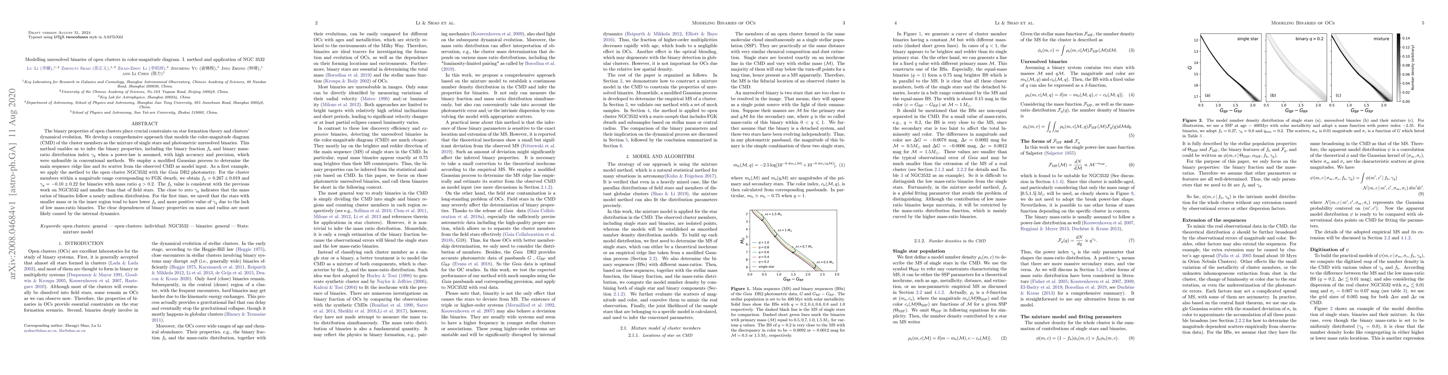 The binary properties of open clusters place crucial constraints on star formation theory and clusters' dynamical evolution. We develop a comprehensive approach that models the color-magnitude diagram (CMD) of the cluster members as the mixture of single stars and photometric unresolved binaries. This method enables us to infer the binary properties, including the binary fraction $f_\mathrm{b}$ and binary mass-ratio distribution index $\gamma_q$ when a power-law is assumed, with high accuracy and precision, which were unfeasible in conventional methods. We employ a modified Gaussian process to determine the main sequence ridge line and its scatter from the observed CMD as model input. As a first example, we apply the method to the open cluster NGC3532 with the Gaia DR2 photometry. For the cluster members within a magnitude range corresponding to FGK dwarfs, we obtain $f_\mathrm{b} = 0.267\pm0.019$ and $\gamma_q = - 0.10\pm0.22$ for binaries with mass ratio $q > 0.2$. The $f_\mathrm{b}$ value is consistent with the previous work on NGC3532 and smaller than that of field stars. The close to zero $\gamma_q$ indicates that the mass ratios of binaries follow a nearly uniform distribution. For the first time, we unveil that the stars with smaller mass or in the inner region tend to have lower $f_\mathrm{b}$ and more positive value of $\gamma_q$ due to the lack of low mass-ratio binaries. The clear dependences of binary properties on mass and radius are most likely caused by the internal dynamics.