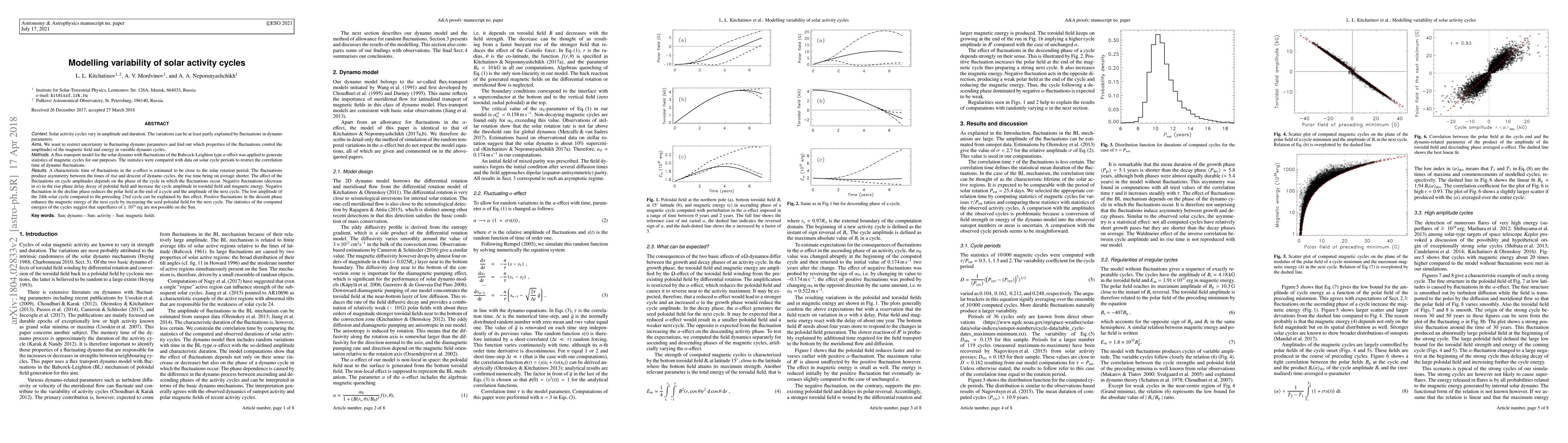 Research models solar activity cycles to understand how fluctuations in dynamo parameters affect cycle amplitude and energy, finding that negative fluctuations can delay the next cycle's rise time and increase its energy.