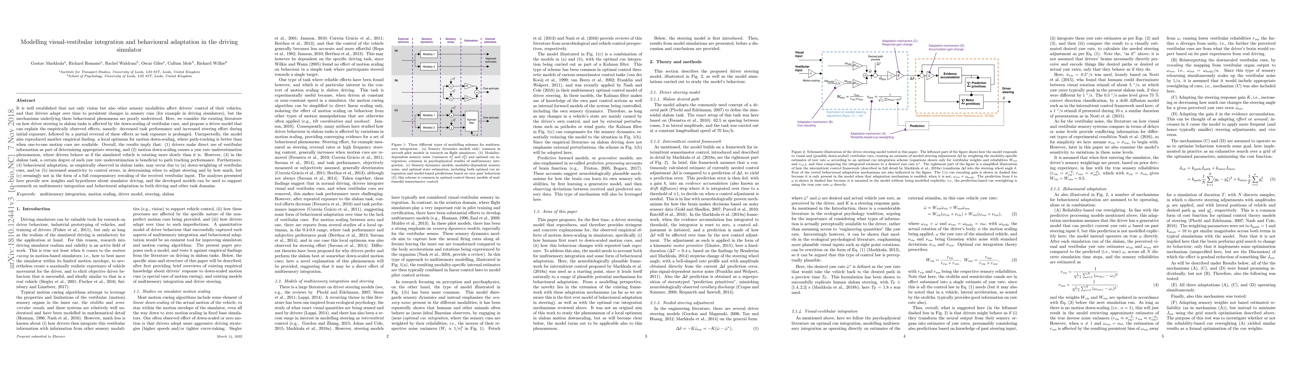 It is well established that not only vision but also other sensory modalities affect drivers' control of their vehicles, and that drivers adapt over time to persistent changes in sensory cues (for example in driving simulators), but the mechanisms underlying these behavioural phenomena are poorly understood. Here, we consider the existing literature on how driver steering in slalom tasks is affected by the down-scaling of vestibular cues, and propose a driver model that can explain the empirically observed effects, namely: decreased task performance and increased steering effort during initial exposure, followed by a partial reversal of these effects as task exposure is prolonged. Unexpectedly, the model also reproduced another empirical finding: a local optimum for motion down-scaling, where path-tracking is better than when one-to-one motion cues are available. Overall, the results imply that: (1) drivers make direct use of vestibular information as part of determining appropriate steering, and (2) motion down-scaling causes a yaw rate underestimation phenomenon, where drivers behave as if the simulated vehicle is rotating more slowly than it is. However, (3) in the slalom task, a certain degree of such yaw rate underestimation is beneficial to path tracking performance. Furthermore, (4) behavioural adaptation, as empirically observed in slalom tasks, may occur due to (a) down-weighting of vestibular cues, and/or (b) increased sensitivity to control errors, in determining when to adjust steering and by how much, but (c) seemingly not in the form of a full compensatory rescaling of the received vestibular input. The analyses presented here provide new insights and hypotheses about simulator driving, and the developed models can be used to support research on multisensory integration and behavioural adaptation in both driving and other task domains.