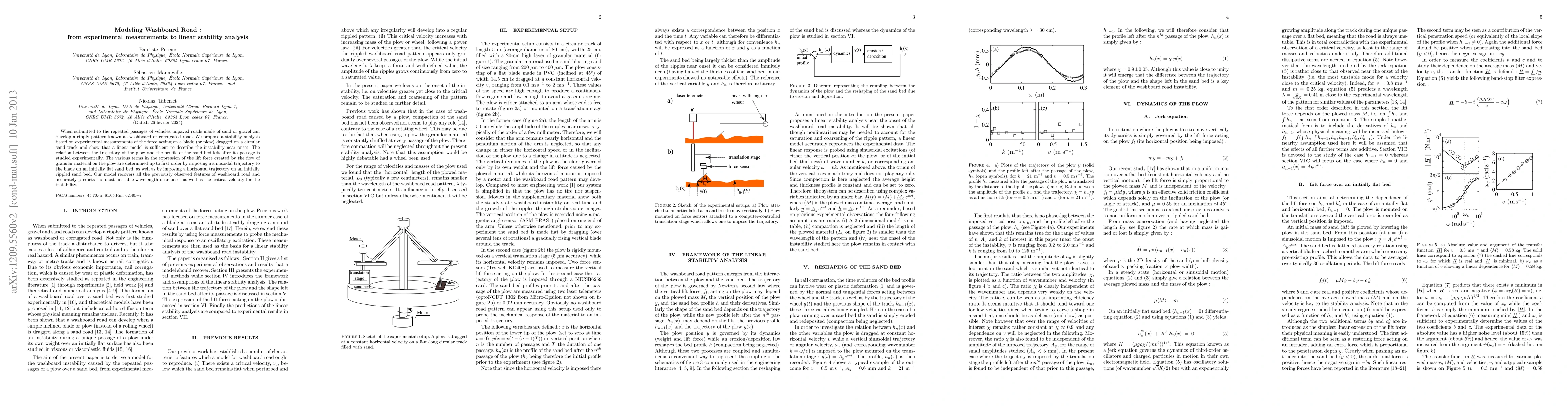 This research presents a linear stability analysis for washboard road formation, using experimental measurements of force on a dragged blade in sand. The model accurately predicts the most unstable wavelength and critical velocity for instability, capturing all previously observed features.