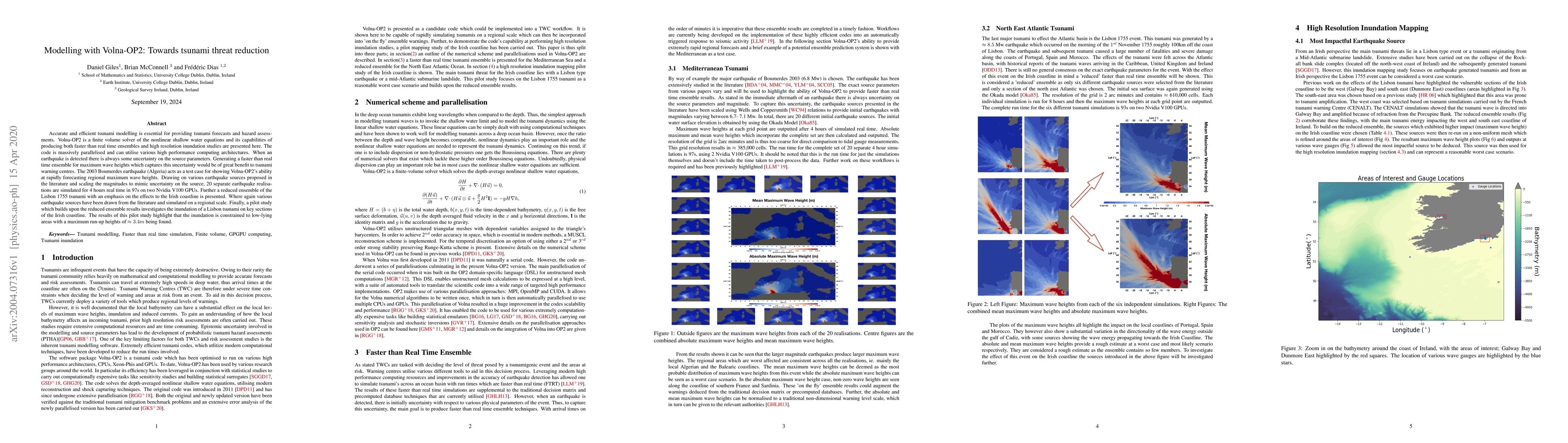 Accurate and efficient tsunami modelling is essential for providing tsunami forecasts and hazard assessments. Volna-OP2 is a finite volume solver of the nonlinear shallow water equations and its capabilities of producing both faster than real time ensembles and high resolution inundation studies are presented here. The code is massively parallelised and can utilise various high performance computing architectures. When an earthquake is detected there is always some uncertainty on the source parameters. Generating a faster than real time ensemble for maximum wave heights which captures this uncertainty would be of great benefit to tsunami warning centres. The 2003 Boumerdes earthquake (Algeria) acts as a test case for showing Volna-OP2's ability at rapidly forecasting regional maximum wave heights. Drawing on various earthquake sources proposed in the literature and scaling the magnitudes to mimic uncertainty on the source, 20 separate earthquake realisations are simulated for 4 hours real time in 97s on two Nvidia V100 GPUs. Further a reduced ensemble of the Lisbon 1755 tsunami with an emphasis on the effects to the Irish coastline is presented. Where again various earthquake sources have been drawn from the literature and simulated on a regional scale. Finally, a pilot study which builds upon the reduced ensemble results investigates the inundation of a Lisbon tsunami on key sections of the Irish coastline. The results of this pilot study highlight that the inundation is constrained to low-lying areas with maximum run-up heights of $\approx 3.4m$ being found.