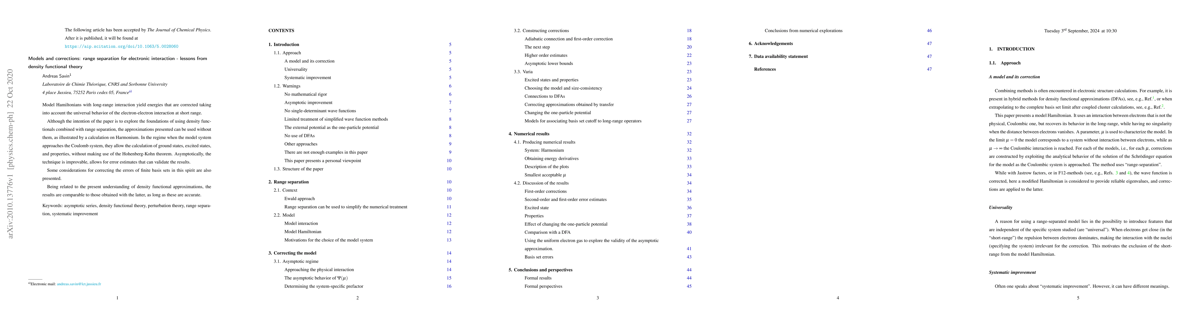 This paper explores the use of range-separated model Hamiltonians to correct electronic interaction energies, demonstrating their effectiveness through calculations on Harmonium. It highlights the potential for these methods to compute ground and excited states without relying on the Hohenberg-Kohn theorem, offering error estimates and considerations for finite basis set corrections.