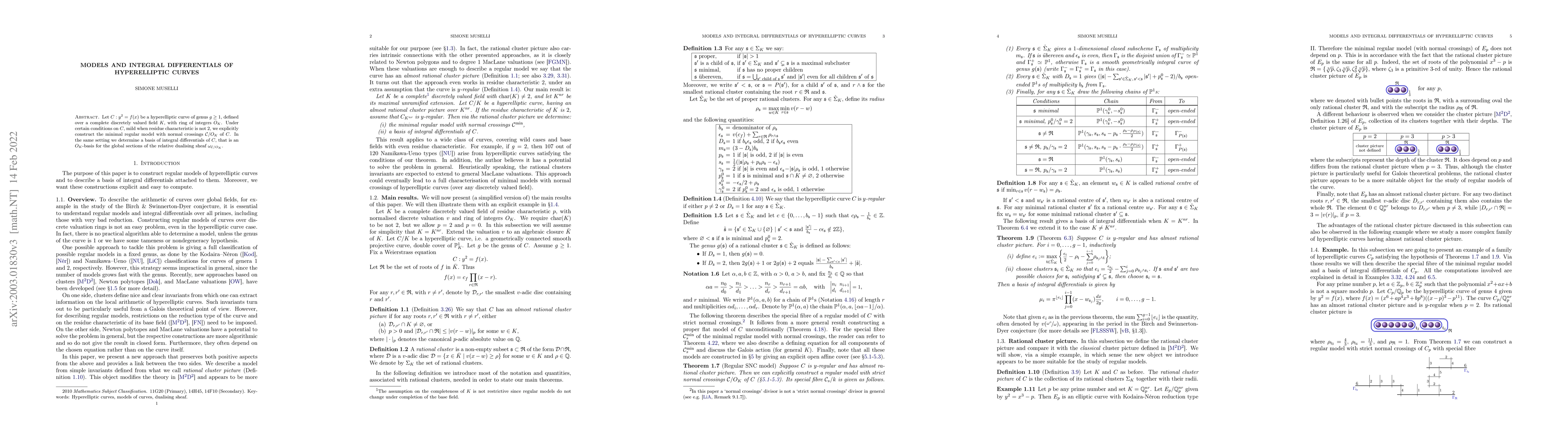 Let $C: y^2=f(x)$ be a hyperelliptic curve of genus $g\geq 1$, defined over a complete discretely valued field $K$, with ring of integers $O_K$. Under certain conditions on $C$, mild when residue characteristic is not $2$, we explicitly construct the minimal regular model with normal crossings $\mathcal{C}/O_K$ of $C$. In the same setting we determine a basis of integral differentials of $C$, that is an $O_K$-basis for the global sections of the relative dualising sheaf $\omega_{\mathcal{C}/O_K}$.