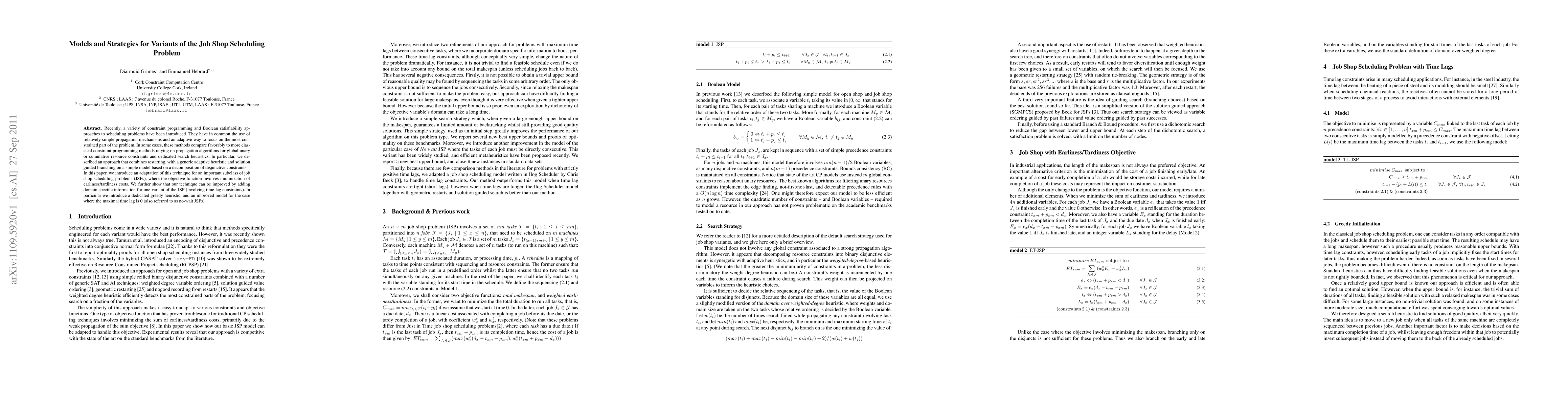 Recently, a variety of constraint programming and Boolean satisfiability approaches to scheduling problems have been introduced. They have in common the use of relatively simple propagation mechanisms and an adaptive way to focus on the most constrained part of the problem. In some cases, these methods compare favorably to more classical constraint programming methods relying on propagation algorithms for global unary or cumulative resource constraints and dedicated search heuristics. In particular, we described an approach that combines restarting, with a generic adaptive heuristic and solution guided branching on a simple model based on a decomposition of disjunctive constraints. In this paper, we introduce an adaptation of this technique for an important subclass of job shop scheduling problems (JSPs), where the objective function involves minimization of earliness/tardiness costs. We further show that our technique can be improved by adding domain specific information for one variant of the JSP (involving time lag constraints). In particular we introduce a dedicated greedy heuristic, and an improved model for the case where the maximal time lag is 0 (also referred to as no-wait JSPs).