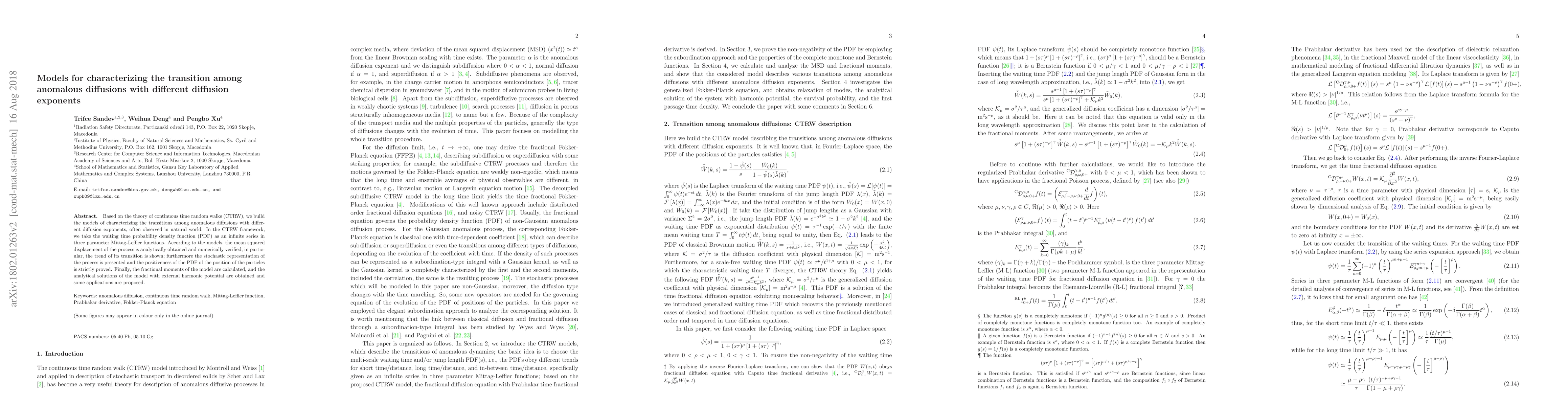 Based on the theory of continuous time random walks (CTRW), we build the models of characterizing the transitions among anomalous diffusions with different diffusion exponents, often observed in natural world. In the CTRW framework, we take the waiting time probability density function (PDF) as an infinite series in three parameter Mittag-Leffler functions. According to the models, the mean squared displacement of the process is analytically obtained and numerically verified, in particular, the trend of its transition is shown; furthermore the stochastic representation of the process is presented and the positiveness of the PDF of the position of the particles is strictly proved. Finally, the fractional moments of the model are calculated, and the analytical solutions of the model with external harmonic potential are obtained and some applications are proposed.