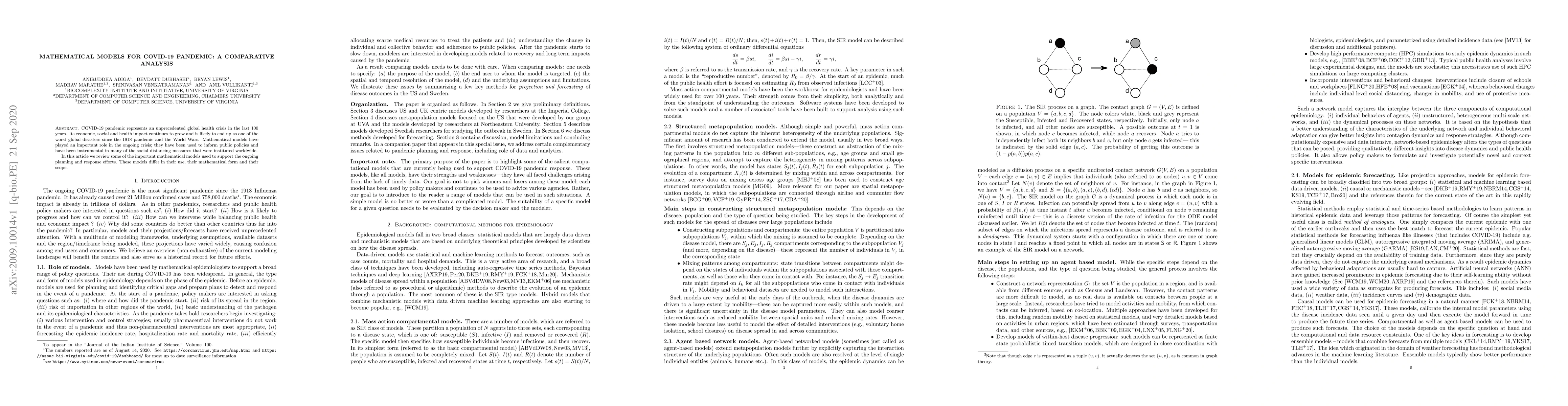 COVID-19 pandemic represents an unprecedented global health crisis in the last 100 years. Its economic, social and health impact continues to grow and is likely to end up as one of the worst global disasters since the 1918 pandemic and the World Wars. Mathematical models have played an important role in the ongoing crisis; they have been used to inform public policies and have been instrumental in many of the social distancing measures that were instituted worldwide. In this article we review some of the important mathematical models used to support the ongoing planning and response efforts. These models differ in their use, their mathematical form and their scope.