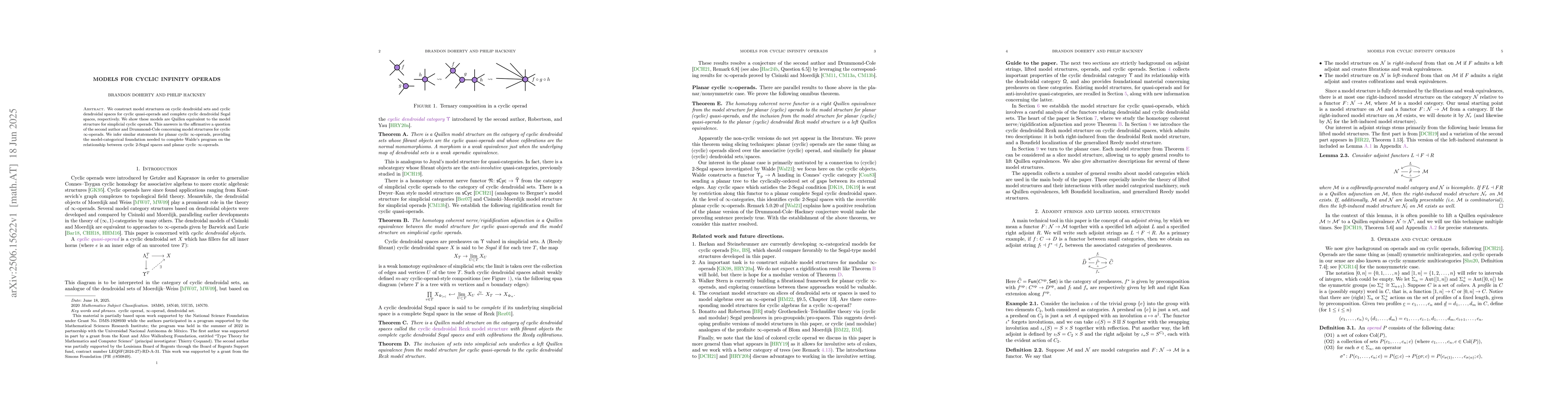 We construct model structures on cyclic dendroidal sets and cyclic dendroidal spaces for cyclic quasi-operads and complete cyclic dendroidal Segal spaces, respectively. We show these models are Quillen equivalent to the model structure for simplicial cyclic operads. This answers in the affirmative a question of the second author and Drummond-Cole concerning model structures for cyclic $\infty$-operads. We infer similar statements for planar cyclic $\infty$-operads, providing the model-categorical foundation needed to complete Walde's program on the relationship between cyclic 2-Segal spaces and planar cyclic $\infty$-operads.