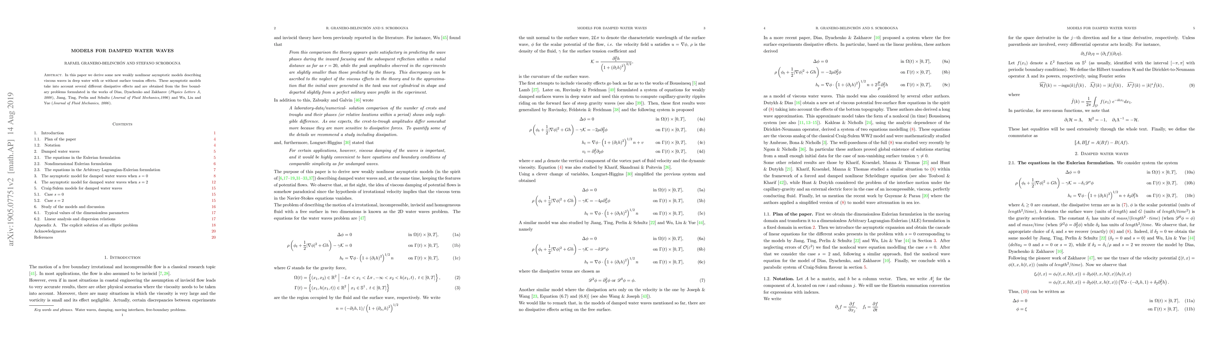 This paper develops new weakly nonlinear asymptotic models for viscous damped water waves, incorporating surface tension and various dissipative effects, derived from prior works by Dias et al., Jiang et al., and Wu et al. These models address deep water wave dynamics through free boundary formulations.