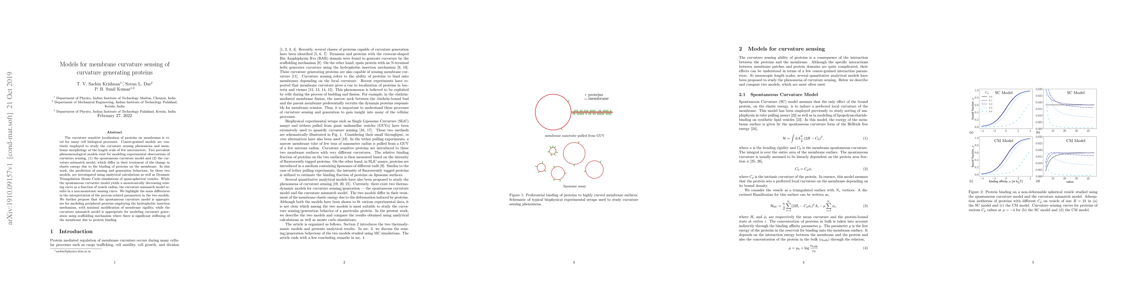 This paper investigates two models for membrane curvature sensing: the spontaneous curvature model and the curvature mismatch model, using simulations and analytical calculations. The spontaneous curvature model predicts a monotonic sensing curve, while the curvature mismatch model results in a non-monotonic curve, highlighting their differing interpretations of protein-membrane interactions and suggesting appropriate contexts for each model.