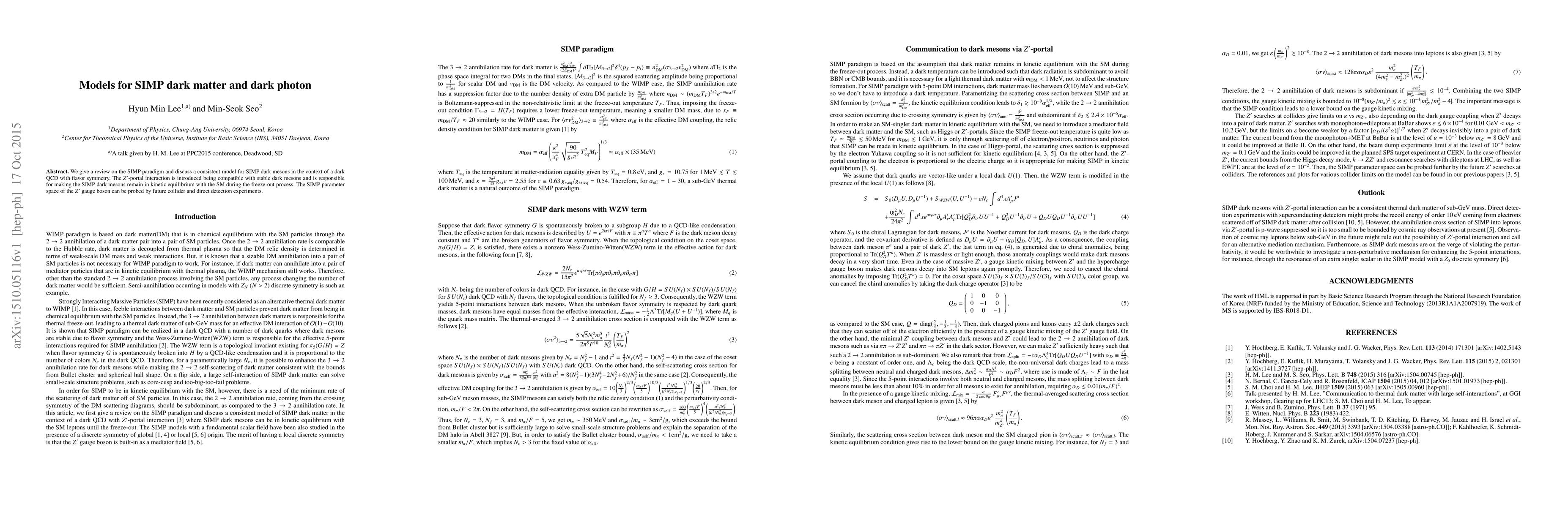 This paper reviews the SIMP (Self-Interacting Dark Matter) paradigm and proposes a model for SIMP dark mesons within a dark QCD framework. It introduces the $Z'$-portal interaction to maintain kinetic equilibrium during the freeze-out process, and suggests that future collider and direct detection experiments could probe the SIMP parameter space.