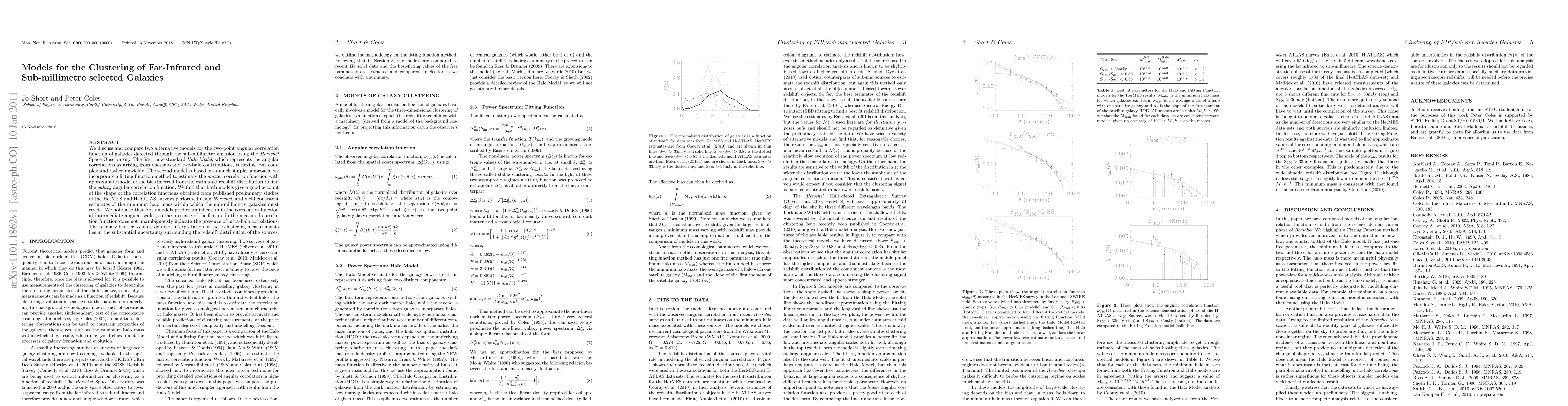 This paper compares two models for clustering of sub-millimetre galaxies detected by Herschel: a complex Halo Model and a simpler fitting function approach. Both models provide similar results for the angular correlation function, highlighting the need for better redshift distribution data for deeper insights.