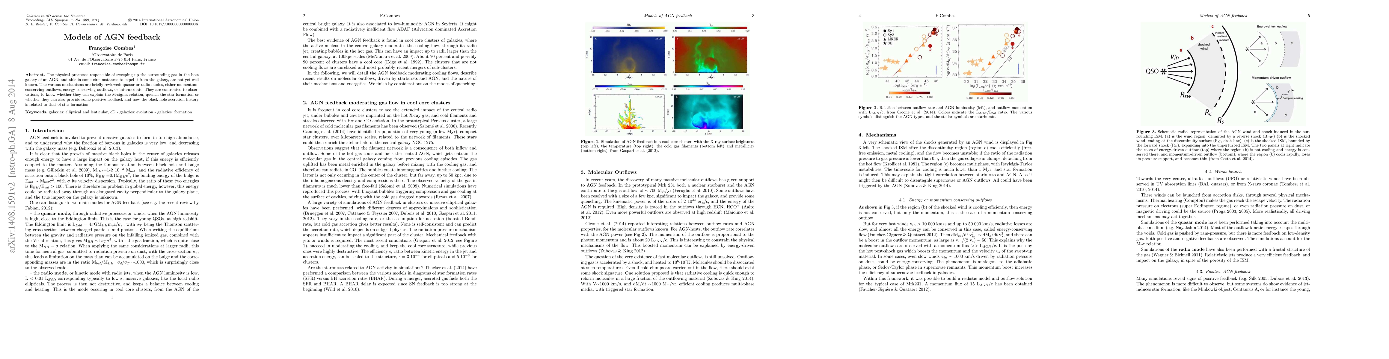 The physical processes responsible of sweeping up the surrounding gas in the host galaxy of an AGN, and able in some circumstances to expel it from the galaxy, are not yet well known. The various mechanisms are briefly reviewed: quasar or radio modes, either momentum-conserving outflows, energy-conserving outflows, or intermediate. They are confronted to observations, to know whether they can explain the M-sigma relation, quench the star formation or whether they can also provide some positive feedback and how the black hole accretion history is related to that of star formation.
