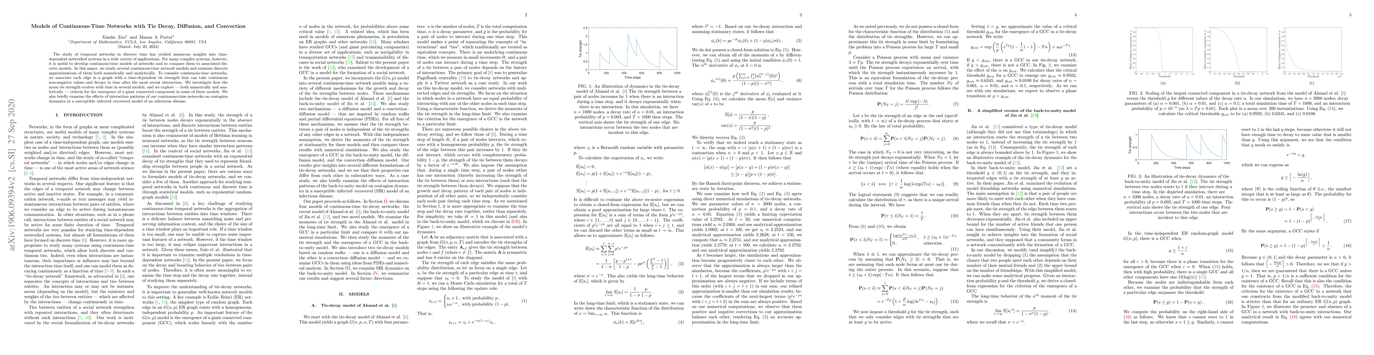 This paper explores continuous-time network models where edge strengths decay over time, comparing them to discrete models. It investigates the evolution of mean tie strength and the emergence of giant connected components, and examines the impact of these networks on disease contagion dynamics.