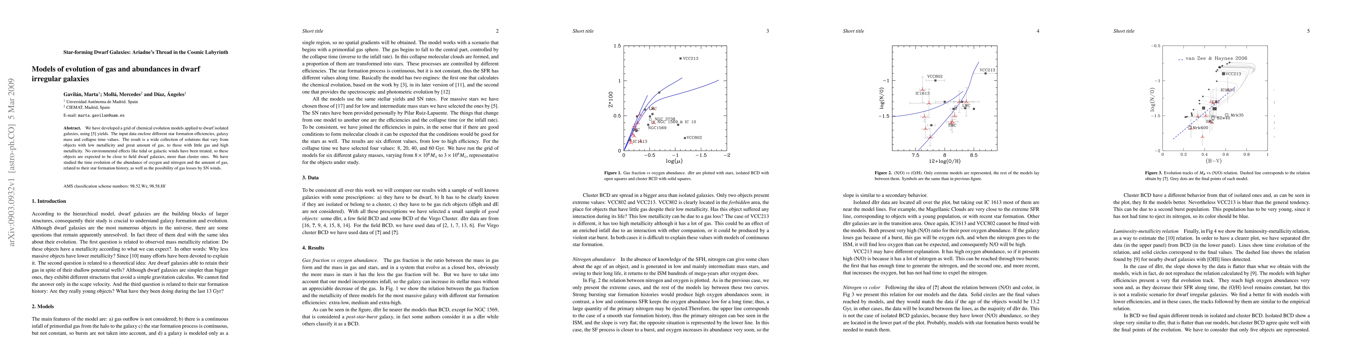 This research paper develops a grid of models to study the evolution of gas and abundances in dwarf irregular galaxies, revealing a range of solutions with varying metallicity and gas content. The findings suggest that these galaxies are likely similar to field dwarf galaxies, without environmental effects.