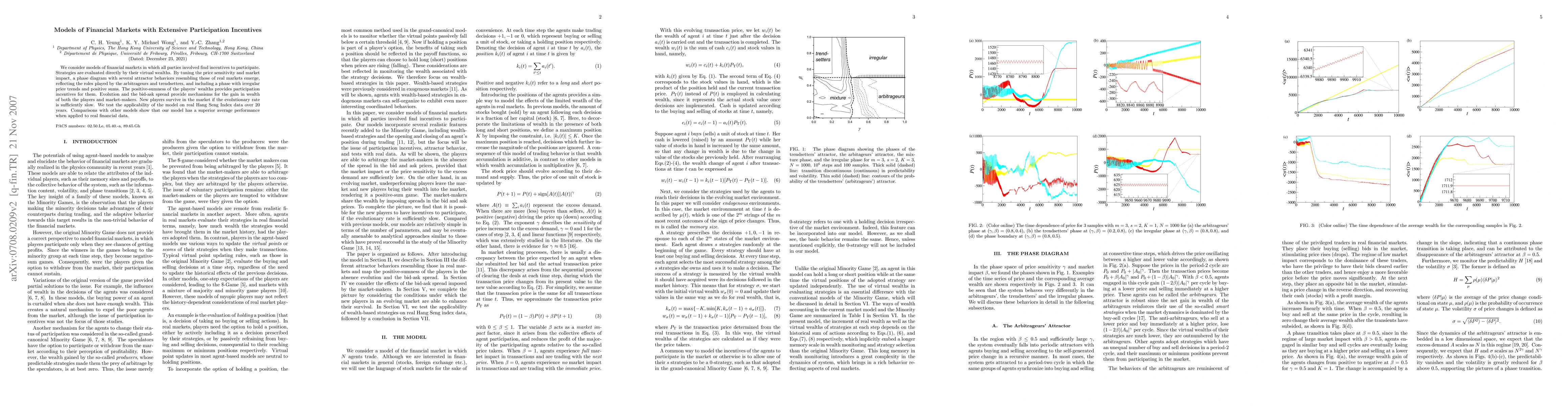 This paper develops financial market models where all participants are incentivized to engage, showing how strategies based on virtual wealth can lead to diverse market behaviors. The model's performance is tested on Hang Seng Index data, demonstrating superior results compared to other models.