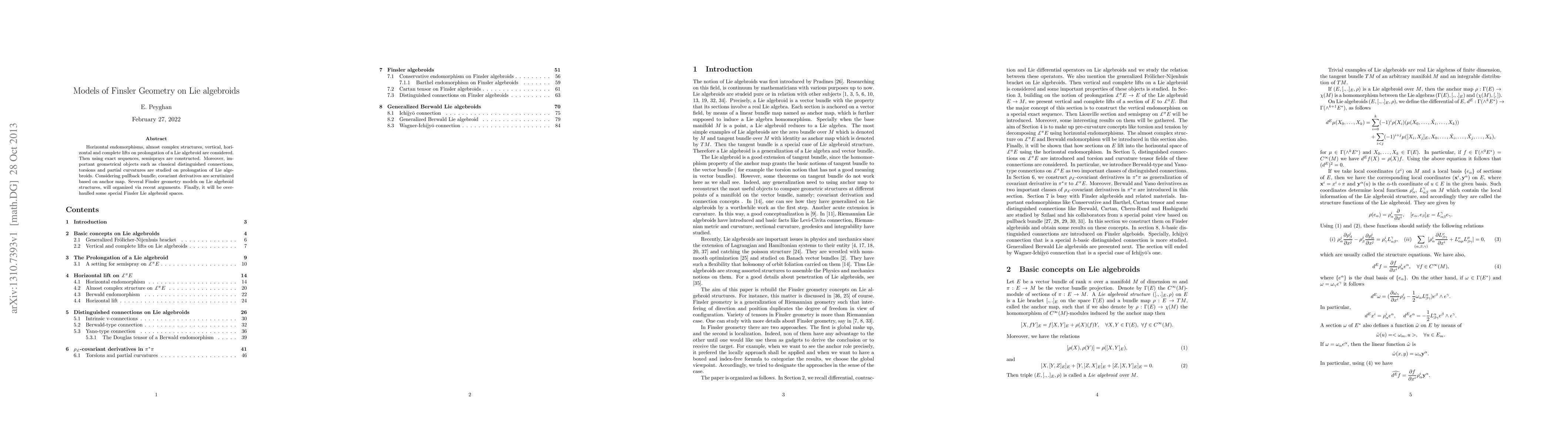 This paper explores Finsler geometry models on Lie algebroids, focusing on the construction of semisprays via exact sequences and the examination of distinguished connections, torsions, and partial curvatures on their prolongations. It also investigates covariant derivatives based on the anchor map and reviews various special Finsler Lie algebroid spaces.