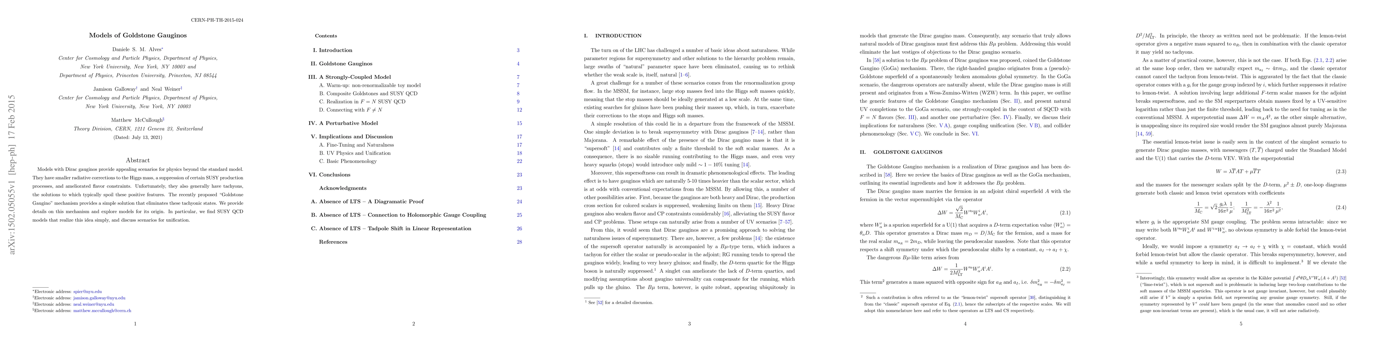 This paper explores models with Dirac gauginos, which offer benefits like reduced radiative corrections and ameliorated flavor constraints, but typically suffer from tachyonic states. The proposed "Goldstone Gaugino" mechanism resolves these issues by eliminating tachyonic states, and the paper details this mechanism and examines its realization in SUSY QCD models, with a focus on unification scenarios.