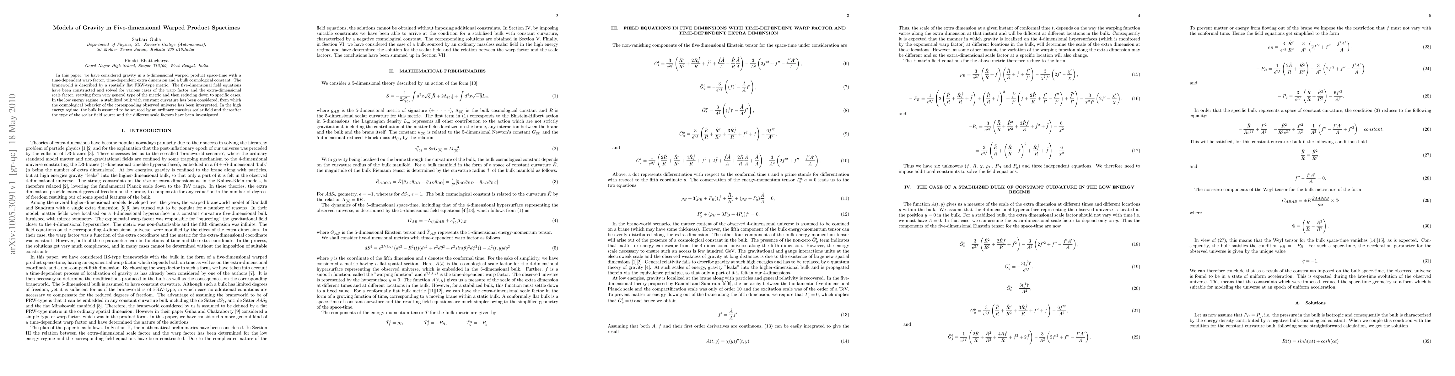 This paper explores gravity in a 5-dimensional warped product space-time with a time-dependent warp factor and extra dimension, solving the five-dimensional field equations for various warp factor cases. It interprets the cosmological behavior of the observed universe in the low energy regime and investigates the bulk sourced by a scalar field in the high energy regime.