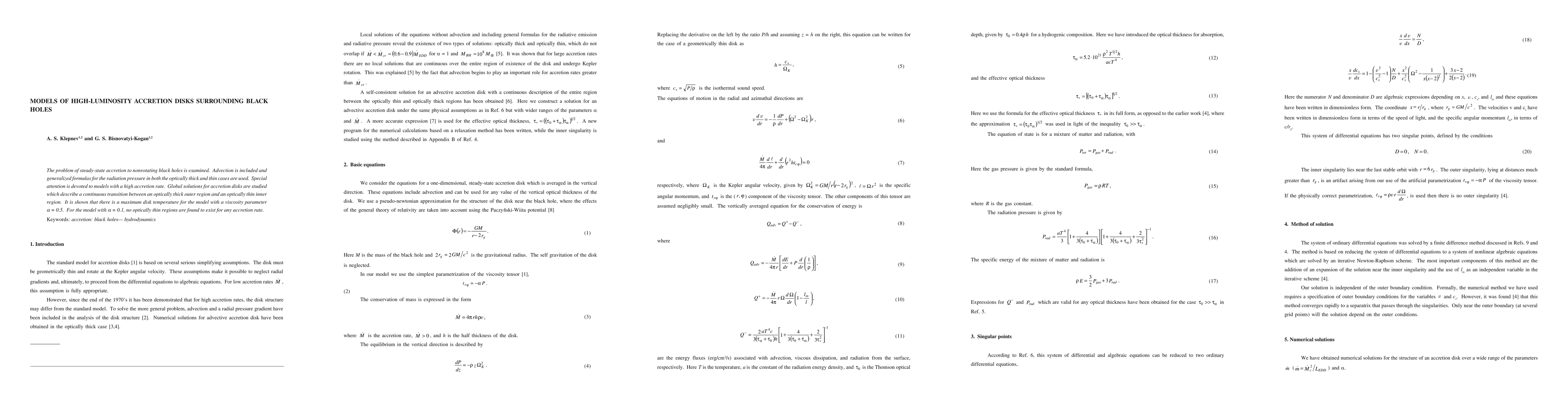 Researchers studied high-luminosity accretion disks around black holes, finding a maximum disk temperature for certain models with high accretion rates and no optically thin regions in others.
