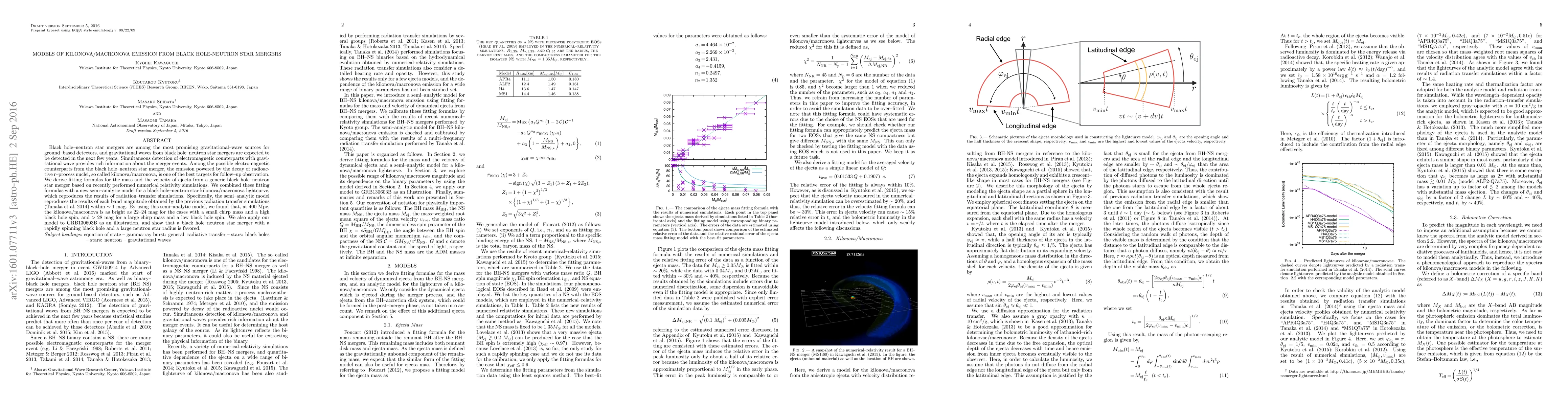 This paper develops fitting formulas for the mass and velocity of ejecta from black hole-neutron star mergers and combines them with a new semi-analytic model to predict kilonova/macronova lightcurves. The model accurately reproduces radiation-transfer simulation results, showing kilonova brightness varying significantly based on merger parameters.