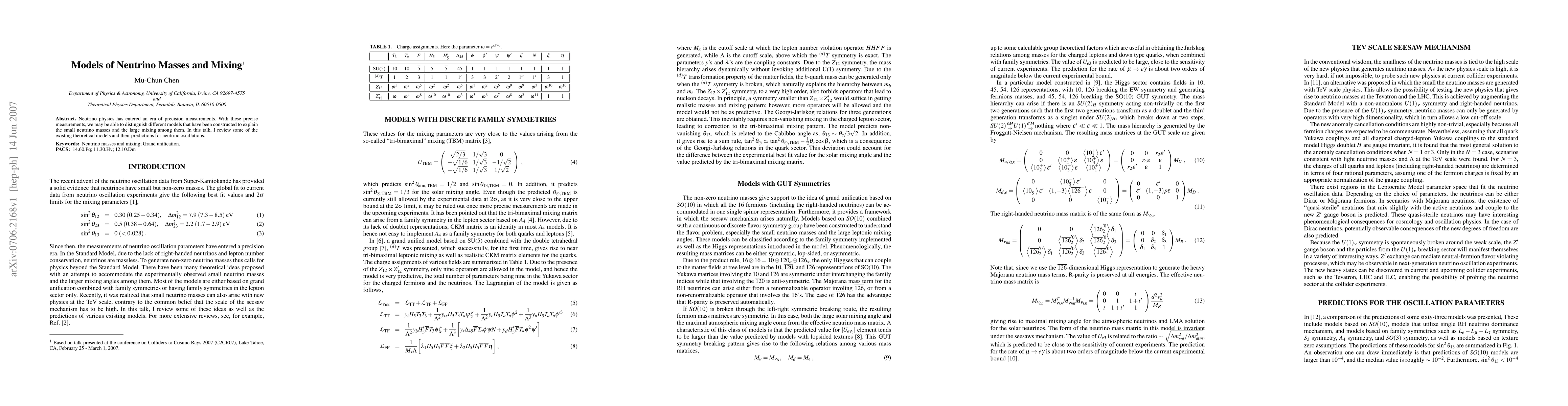 This paper reviews various theoretical models explaining the small masses and significant mixing of neutrinos, focusing on their predictions for neutrino oscillations in light of recent precision measurements. It aims to distinguish between these models based on current experimental data.