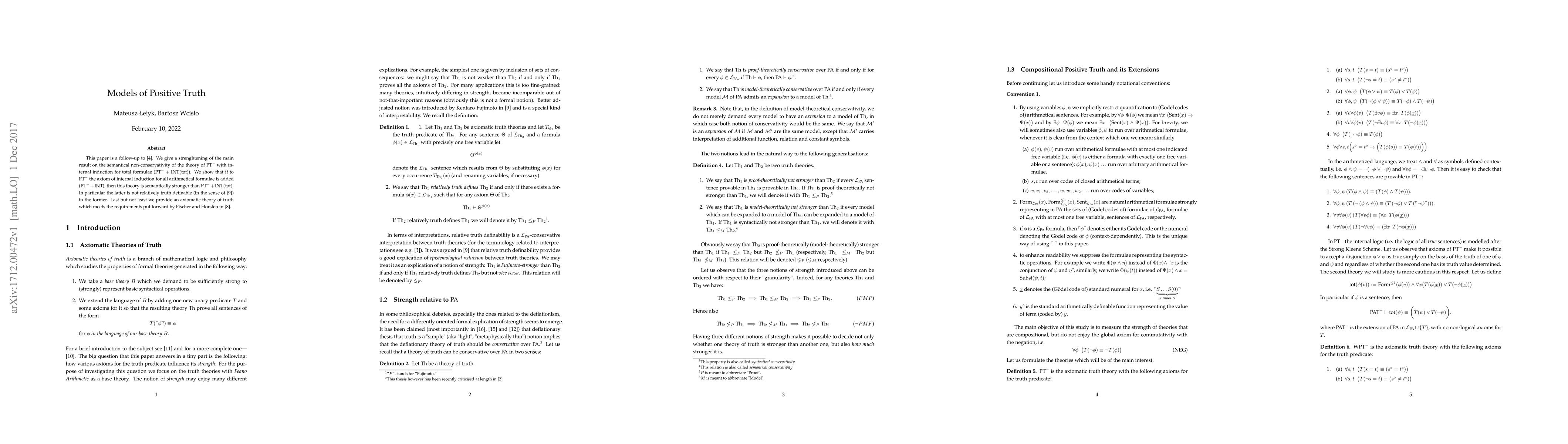 This paper is a follow-up to "Models of PT${}^-$ with internal induction for total formulae." We give a strenghtening of the main result on the semantical non-conservativity of the theory of PT${}^-$ with internal induction for total formulae (PT${}^- +$ INT(tot)). We show that if to PT${}^-$ the axiom of internal induction for all arithmetical formulae is added (PT${}^-$), then this theory is semantically stronger than PT${}^- +$ INT(tot). In particular the latter is not relatively truth definable (in the sense of Fujimoto) in the former. Last but not least we provide an axiomatic theory of truth which meets the requirements put forward by Fischer and Horsten in "The expressive power of truth."