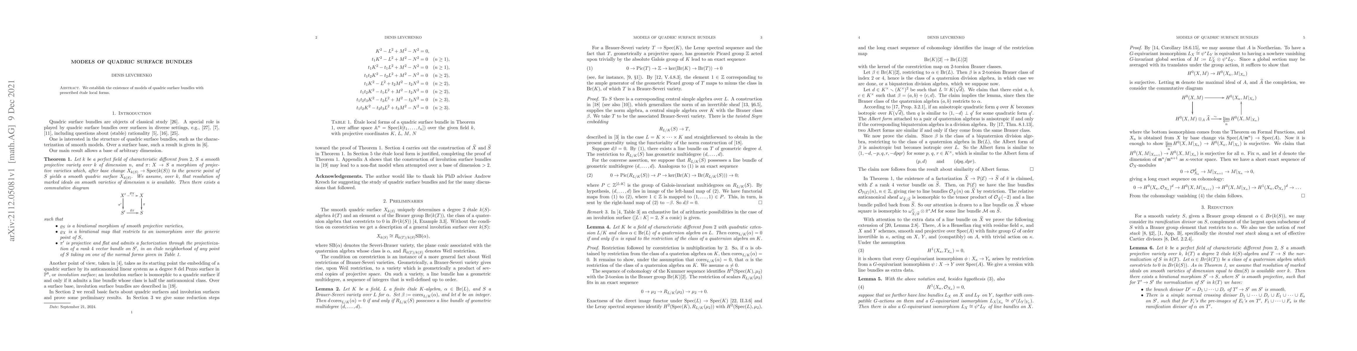 The paper establishes the existence of quadric surface bundle models with specified \'etale local forms, providing a foundational result in the classification of such bundles. This contributes to the broader understanding of algebraic geometry and birational transformations.