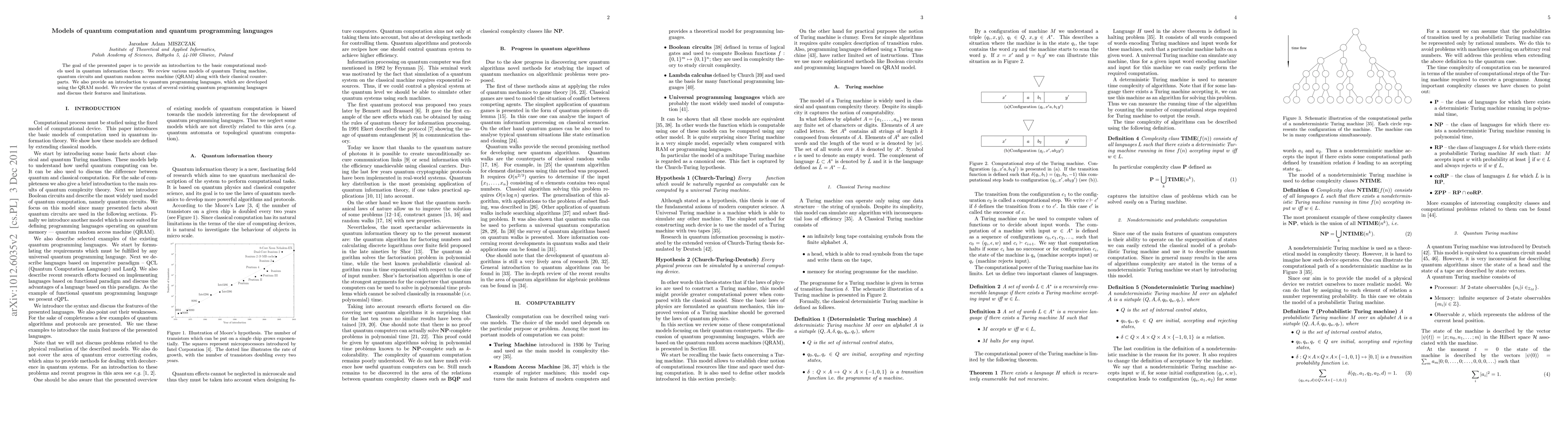 This paper introduces fundamental quantum computation models, including quantum Turing machines, quantum circuits, and quantum random access machines (QRAM), alongside their classical counterparts. It also explores quantum programming languages built on the QRAM model, reviewing their syntax, features, and limitations.