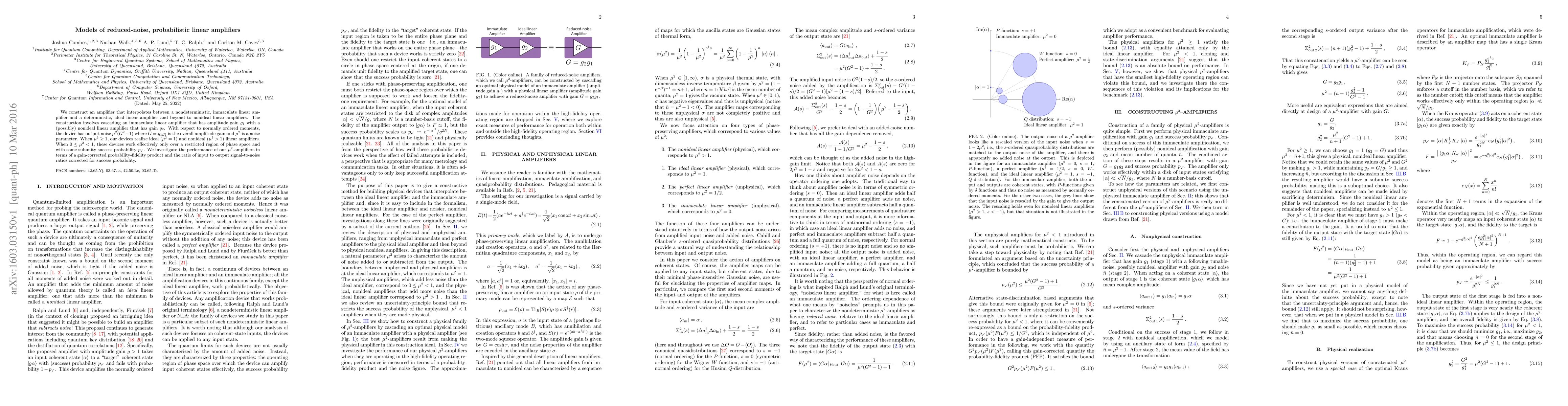 We construct an amplifier that interpolates between a nondeterministic, immaculate linear amplifier and a deterministic, ideal linear amplifier and beyond to nonideal linear amplifiers. The construction involves cascading an immaculate linear amplifier that has amplitude gain $g_1$ with a (possibly) nonideal linear amplifier that has gain $g_2$. With respect to normally ordered moments, the device has output noise $\mu^2(G^2-1)$ where $G=g_1 g_2$ is the overall amplitude gain and $\mu^2$ is a noise parameter. When $\mu^2\ge1$, our devices realize ideal ($\mu^2=1$) and nonideal ($\mu^2>1$) linear amplifiers. When $0\le\mu^2<1$, these devices work effectively only over a restricted region of phase space and with some subunity success probability $p_{\checkmark}$. We investigate the performance of our $\mu^2$-amplifiers in terms of a gain-corrected probability-fidelity product and the ratio of input to output signal-to-noise ratios corrected for success probability.