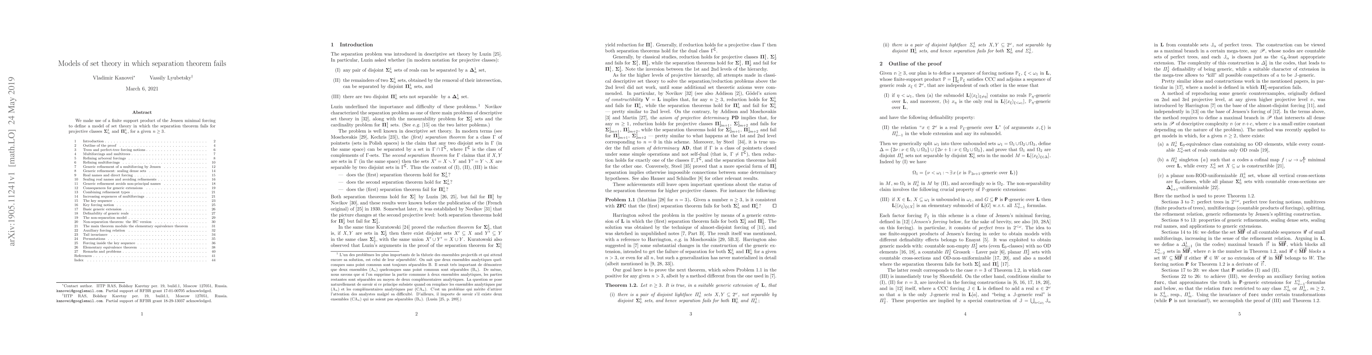 We make use of a finite support product of the Jensen minimal forcing to define a model of set theory in which the separation theorem fails for projective classes $\mathbf\Sigma^1_n$ and $\mathbf\Pi^1_n$, for a given $n\ge3$.