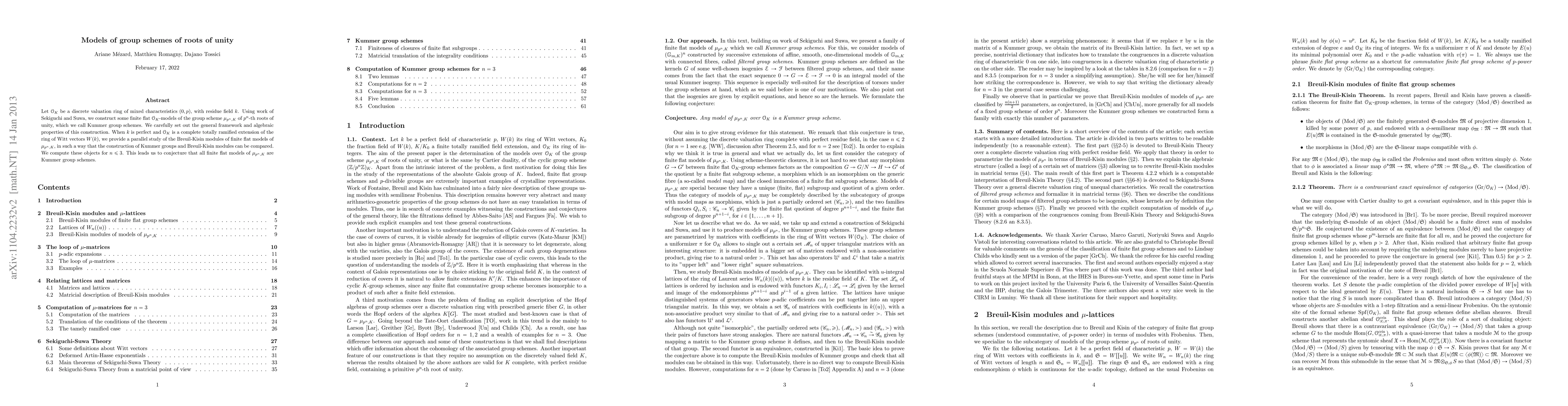 Let O_K be a discrete valuation ring of mixed characteristics (0,p), with residue field k. Using work of Sekiguchi and Suwa, we construct some finite flat O_K-models of the group scheme \mu_{p^n,K} of p^n-th roots of unity, which we call Kummer group schemes. We set carefully the general framework and algebraic properties of this construction. When k is perfect and O_K is a complete totally ramified extension of the ring of Witt vectors W(k), we provide a parallel study of the Breuil-Kisin modules of finite flat models of \mu_{p^n,K}, in such a way that the construction of Kummer groups and Breuil-Kisin modules can be compared. We compute these objects for n < 4. This leads us to conjecture that all finite flat models of \mu_{p^n,K} are Kummer group schemes.