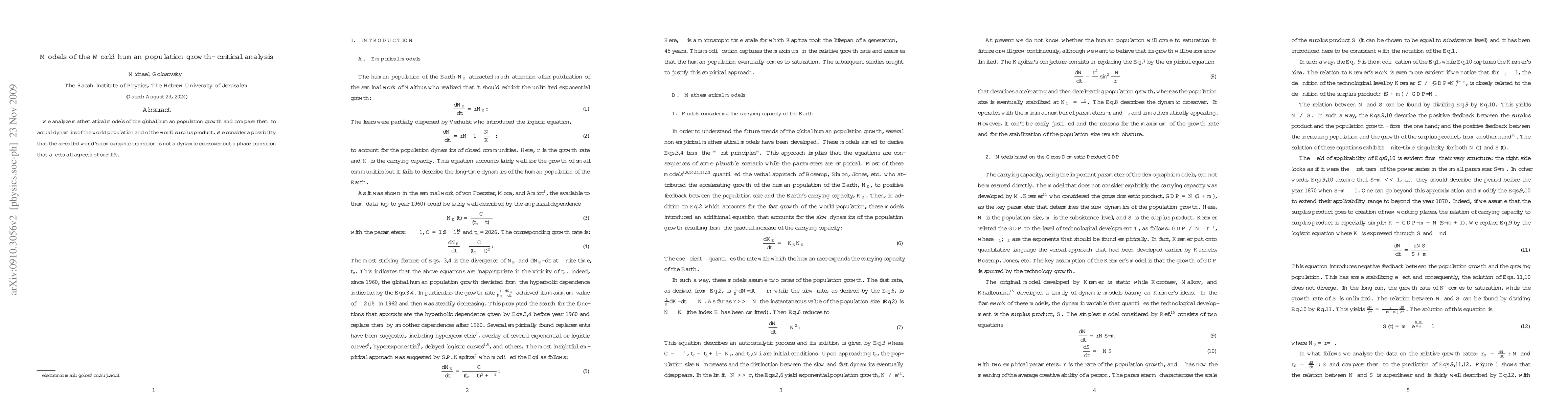 We analyze mathematical models of the global human population growth and compare them to actual dynamics of the world population and of the world surplus product. We consider a possibility that the so-called world's demographic transition is not a dynamic crossover but a phase transition that affects all aspects of our life.