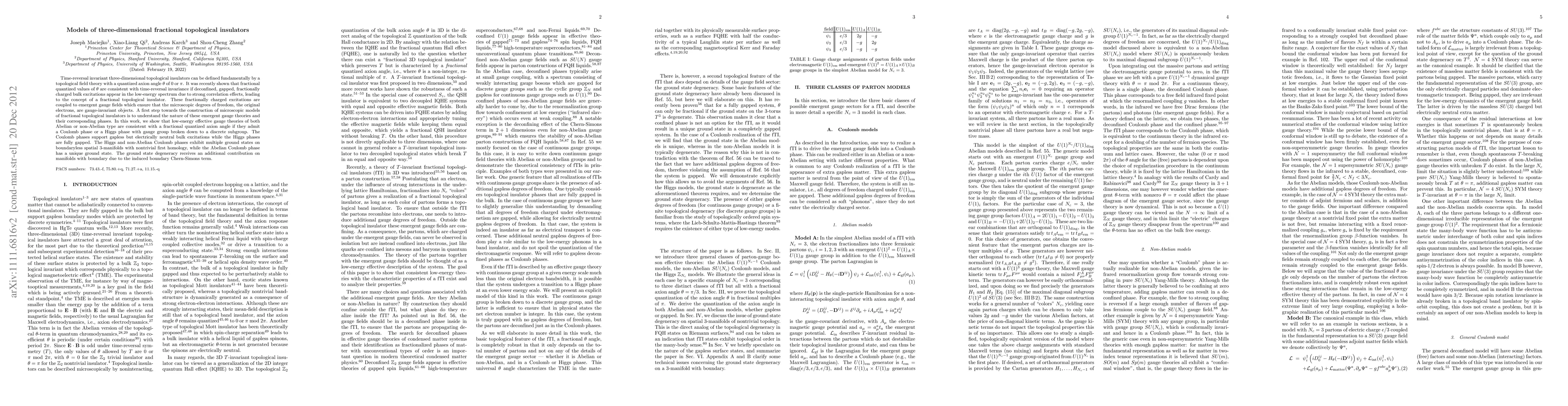 This paper explores the construction of microscopic models for three-dimensional fractional topological insulators, demonstrating that low-energy effective gauge theories with fractional quantized axion angles can be consistent if they exhibit Coulomb or Higgs phases. The study reveals that these phases support distinct ground state degeneracies, with unique and multiple ground states depending on the topology of the spatial manifold.