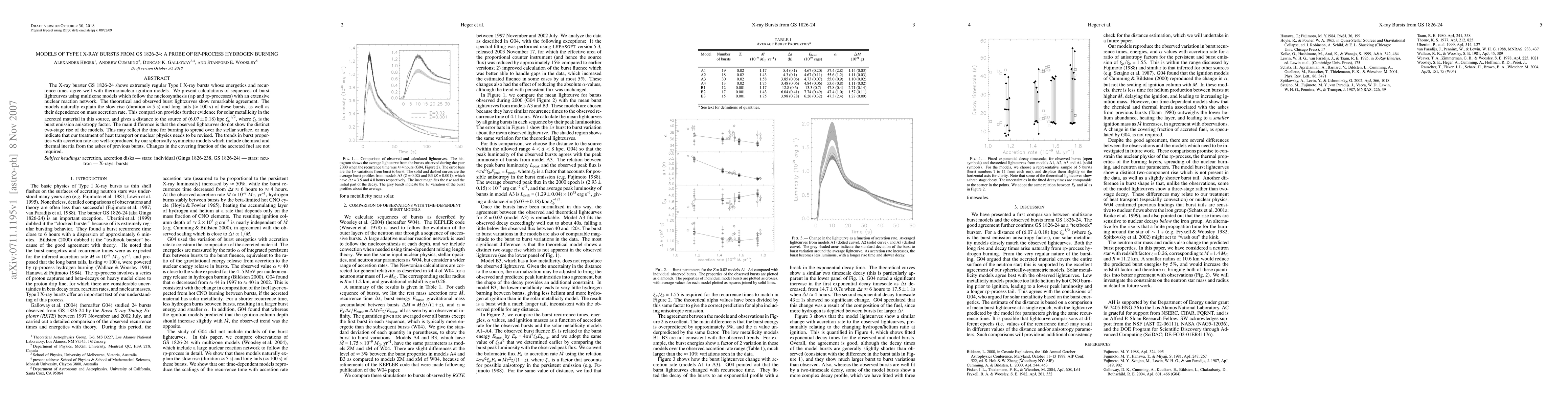 This paper investigates Type I X-ray bursts from GS 1826-24 using multizone models that incorporate rp-process nucleosynthesis, finding strong agreement between theoretical and observed lightcurves. The models suggest solar metallicity in the accreted material and provide insights into the burst's rise and tail durations, but discrepancies in the two-stage rise may indicate needed refinements in heat transport or nuclear physics.