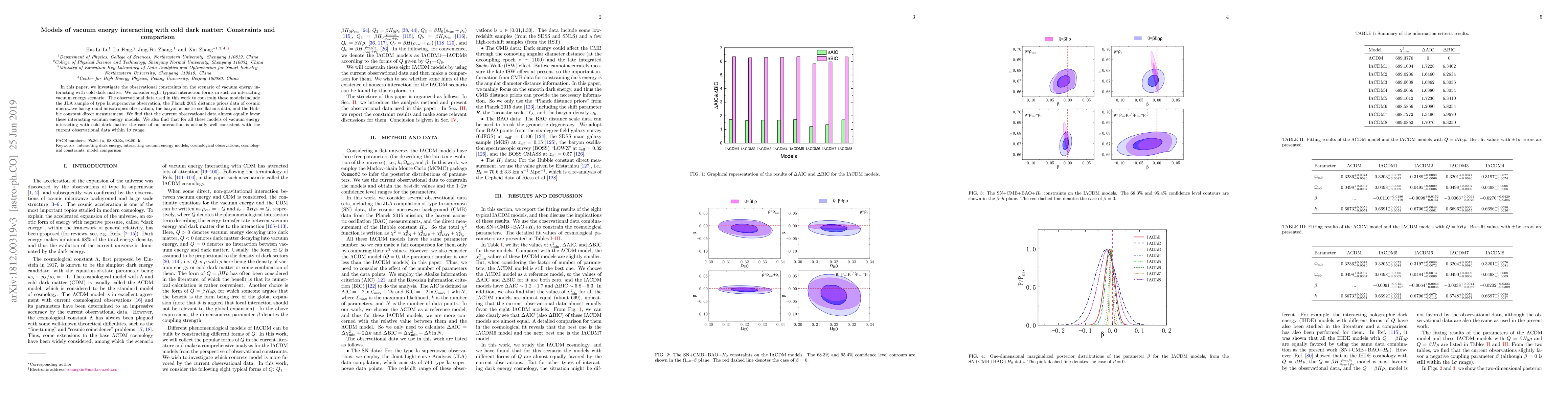This paper examines observational constraints on vacuum energy interacting with cold dark matter, considering eight interaction forms. Using data from supernovae, cosmic microwave background, baryon acoustic oscillations, and Hubble constant measurements, it finds that current data equally favor these models, though no interaction is also consistent within 1σ.