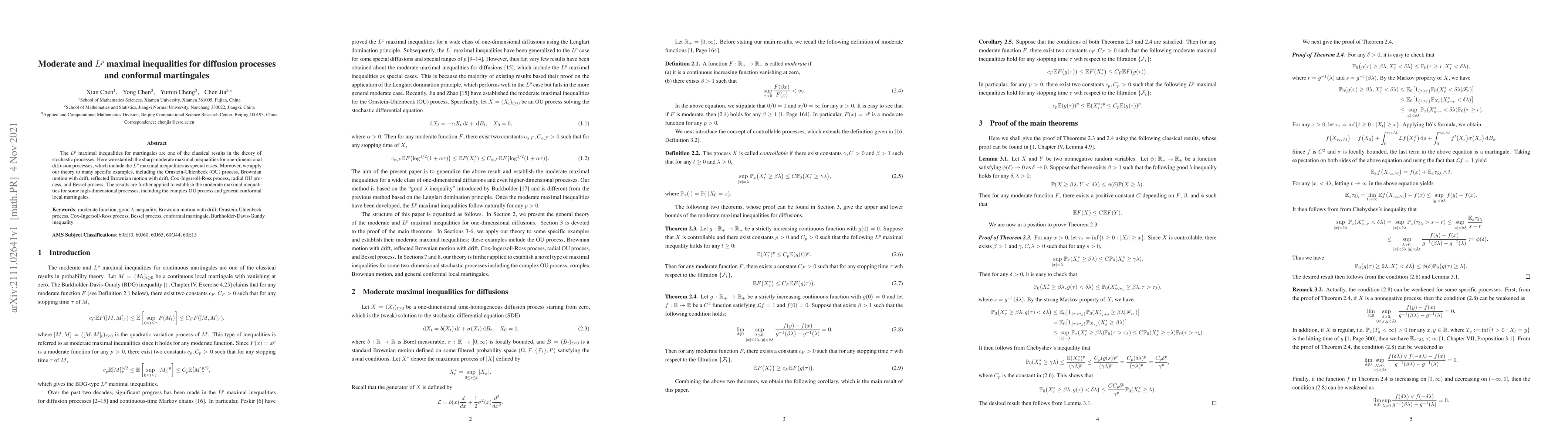 This paper establishes sharp moderate maximal inequalities for one-dimensional diffusion processes and extends these results to high-dimensional processes, including conformal martingales. Specific examples like the Ornstein-Uhlenbeck and Bessel processes are analyzed, and the findings are applied to complex OU processes and general conformal local martingales.