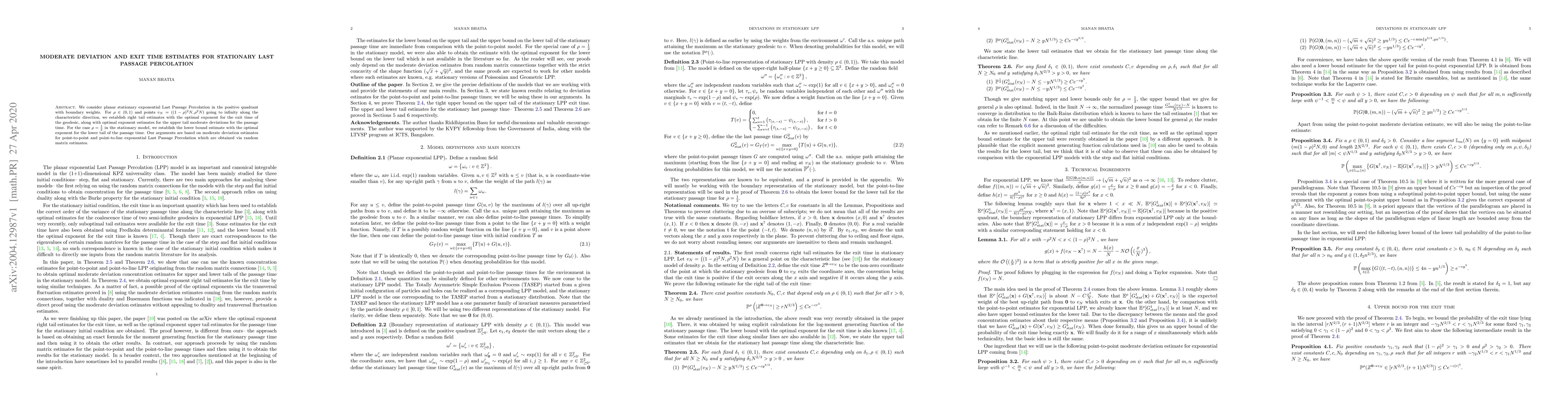 This paper establishes optimal right tail estimates for the exit time and upper tail moderate deviation estimates for passage time in stationary exponential Last Passage Percolation with boundary weights. The results are derived using moderate deviation principles and random matrix techniques.
