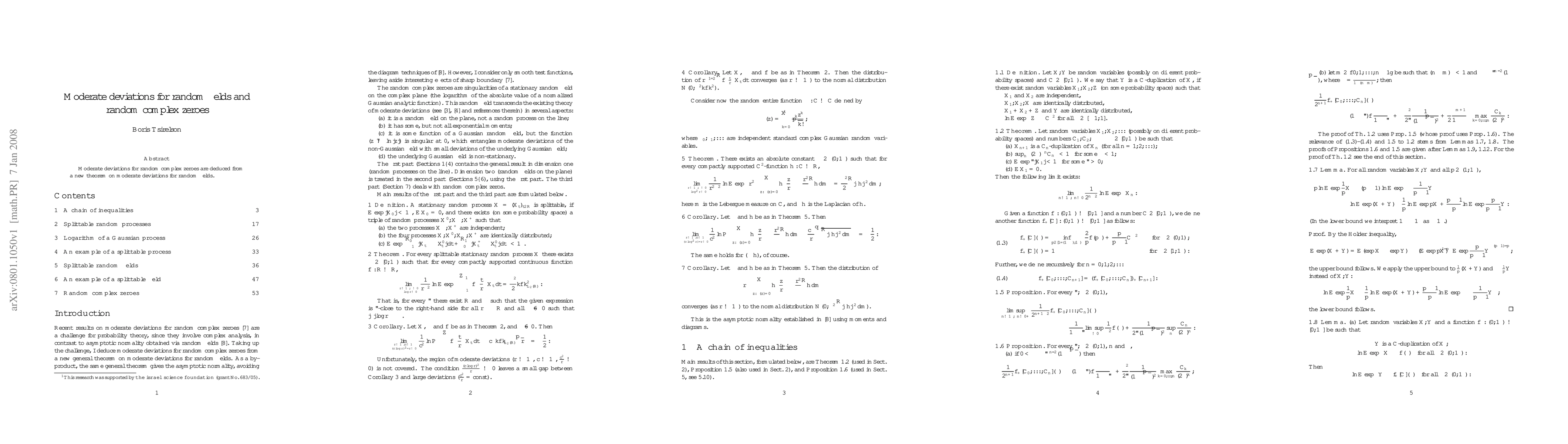 Summary: This paper establishes a new theorem on moderate deviations for random fields, which is then used to derive moderate deviations for random complex zeroes. The findings provide deeper insights into the probabilistic behavior of these complex structures.