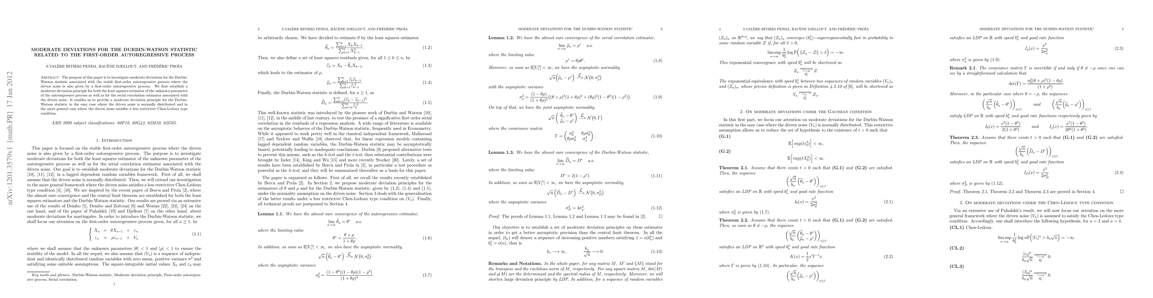 The purpose of this paper is to investigate moderate deviations for the Durbin-Watson statistic associated with the stable first-order autoregressive process where the driven noise is also given by a first-order autoregressive process. We first establish a moderate deviation principle for both the least squares estimator of the unknown parameter of the autoregressive process as well as for the serial correlation estimator associated with the driven noise. It enables us to provide a moderate deviation principle for the Durbin-Watson statistic in the easy case where the driven noise is normally distributed and in the more general case where the driven noise satisfies a less restrictive Chen-Ledoux type condition.