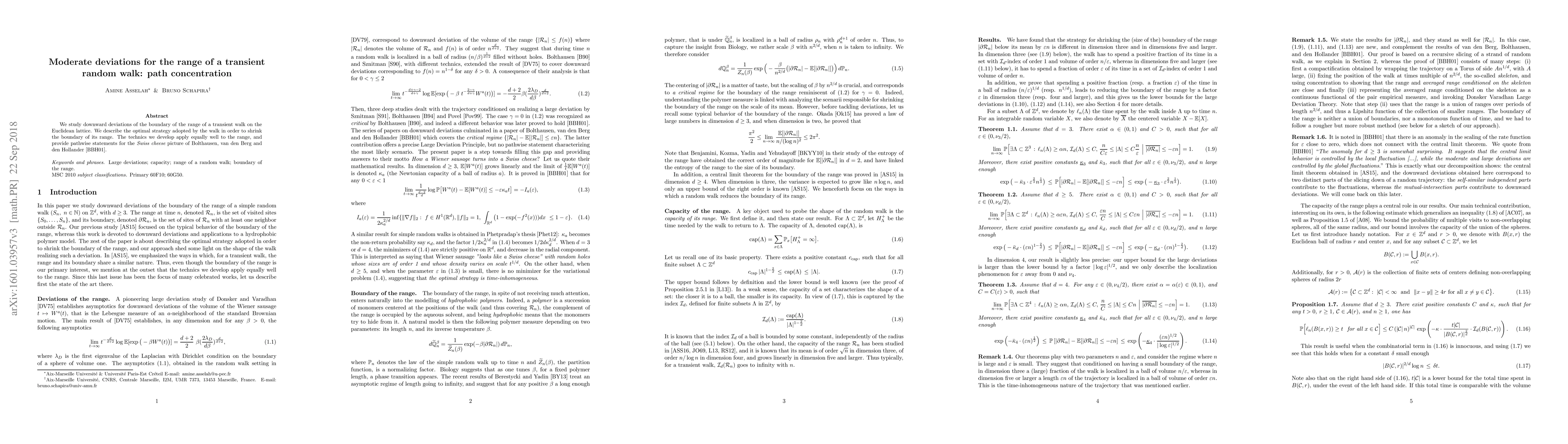 We study downward deviations of the boundary of the range of a transient walk on the Euclidean lattice. We describe the optimal strategy adopted by the walk in order to shrink the boundary of its range. The technics we develop apply equally well to the range, and provide pathwise statements for the {\it Swiss cheese} picture of Bolthausen, van den Berg and den Hollander \cite{BBH}.