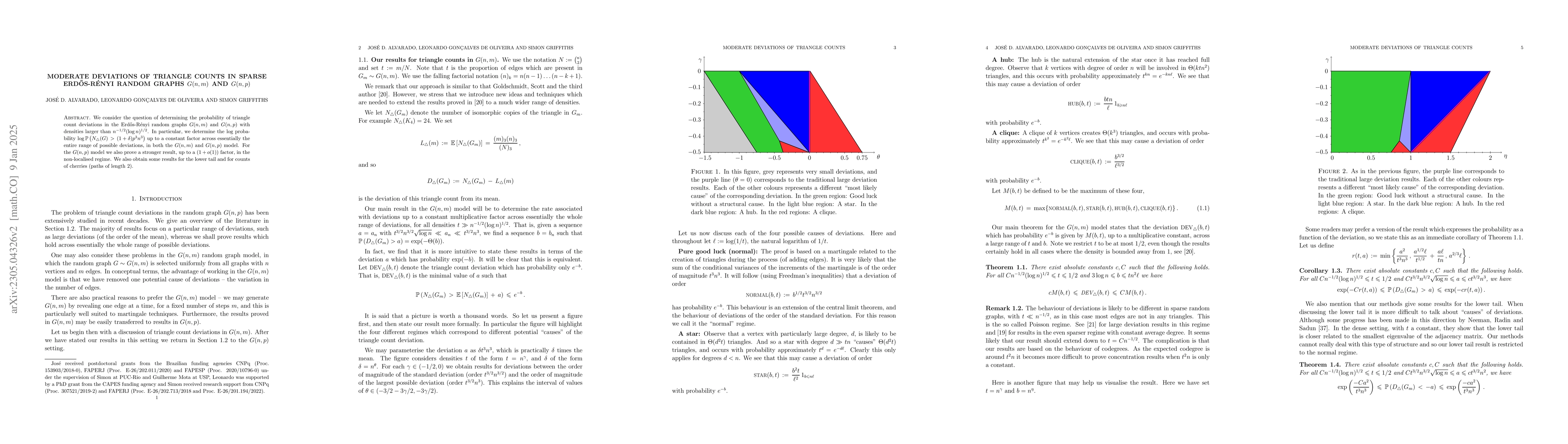 This paper explores the probability of triangle count deviations in sparse Erdős-Rényi random graphs, determining the log probability of triangle count exceeding $(1+\delta)p^3n^3$ up to a constant factor. It also proves a stronger result for the $G(n,p)$ model in the non-localized regime and provides results for lower tail probabilities and cherry counts.