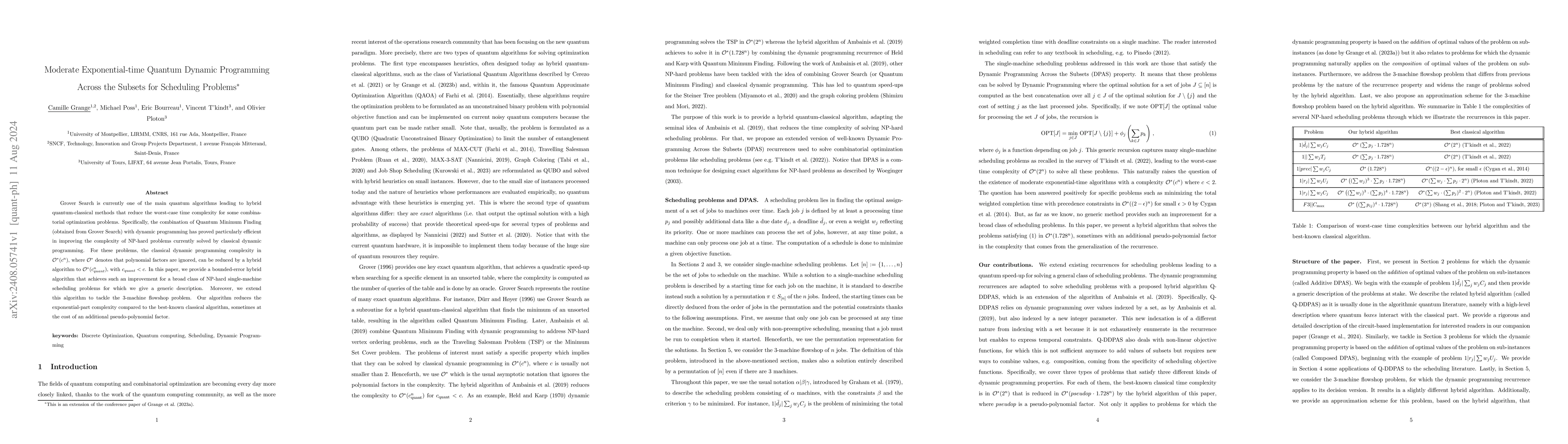 This paper introduces a hybrid quantum-classical algorithm combining Quantum Minimum Finding and dynamic programming to significantly reduce the time complexity for NP-hard scheduling problems, including the 3-machine flowshop problem, from $\mathcal{O}^*(c^n)$ to $\mathcal{O}^*(c_{quant}^n)$ with $c_{quant} < c$.