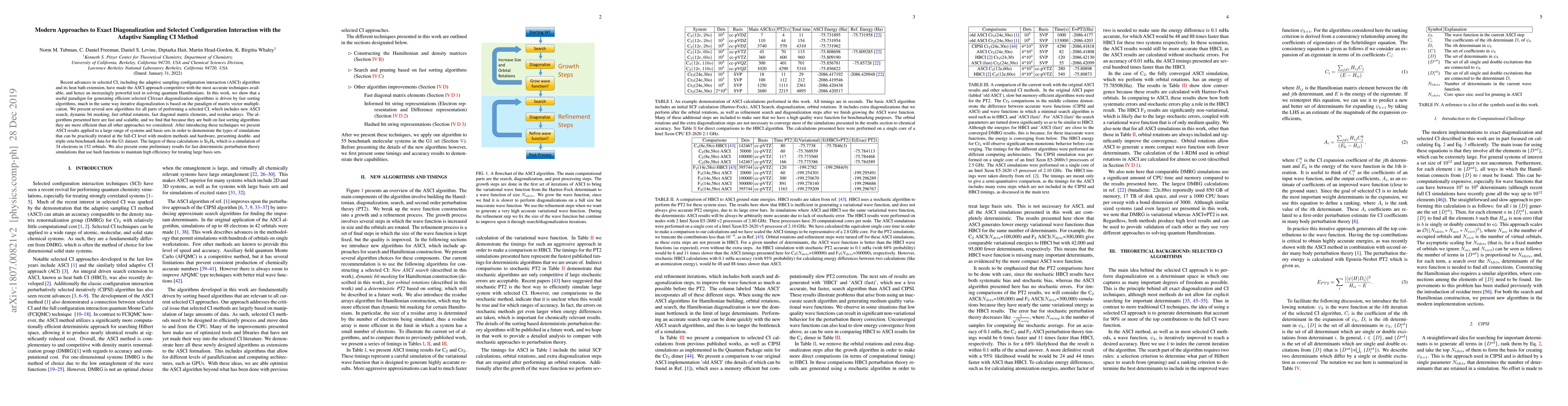 This paper introduces advanced algorithms for selected configuration interaction (CI) and exact diagonalization, emphasizing the ASCI approach. These new techniques, based on fast sorting algorithms, significantly enhance efficiency and scalability, outperforming other methods. The study demonstrates practical applications to large quantum systems, including a Si$_{2}$H$_{6}$ simulation, and explores preliminary perturbation theory methods using hash functions.