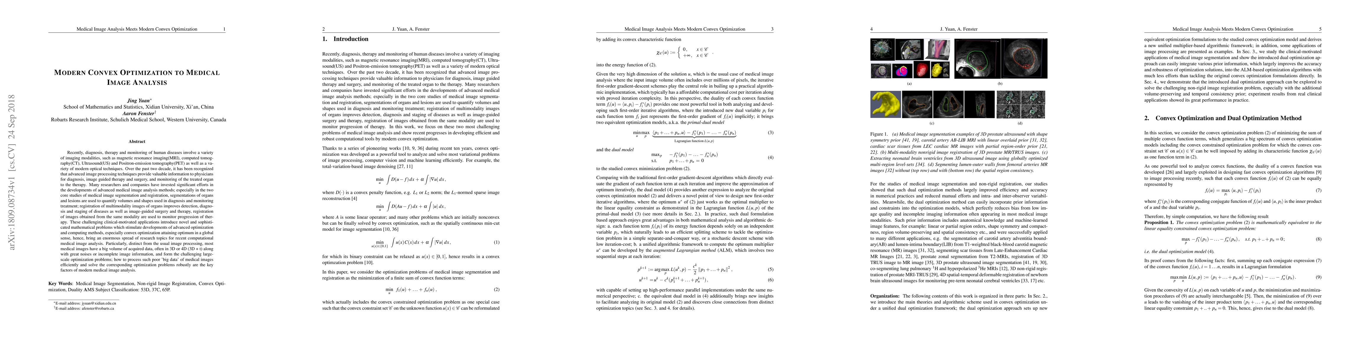 This paper discusses the application of modern convex optimization techniques to the analysis of medical images, emphasizing the use of advanced image processing for diagnosis, therapy, and monitoring. It highlights the challenges posed by large-scale, noisy, and incomplete medical data, focusing on optimization methods to robustly address these issues.
