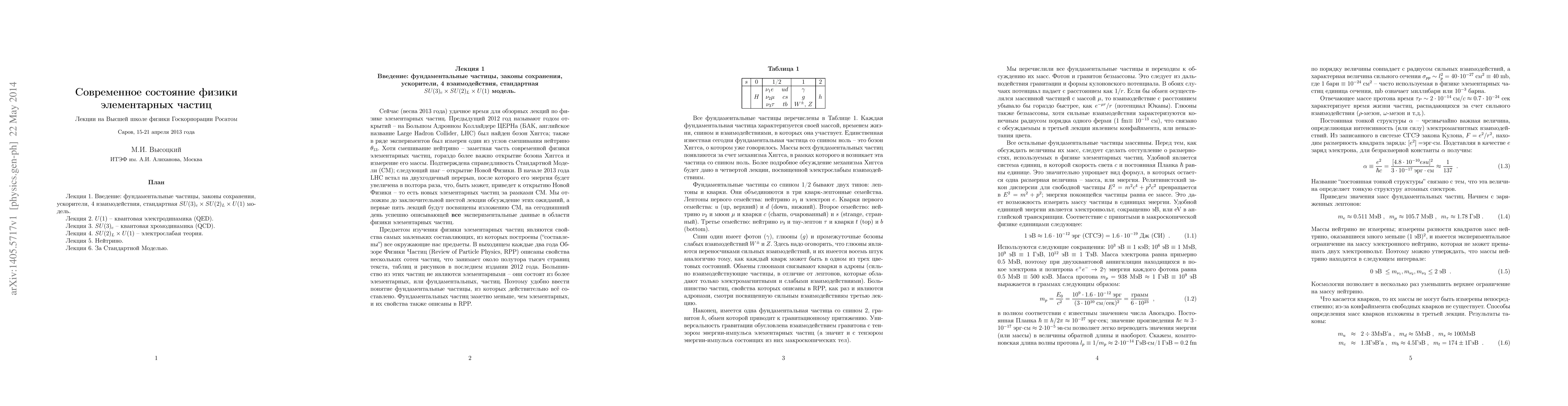 The purpose of these lectures is to describe the state of affairs in modern particle physics to young physicists who do not specialize in this subject.