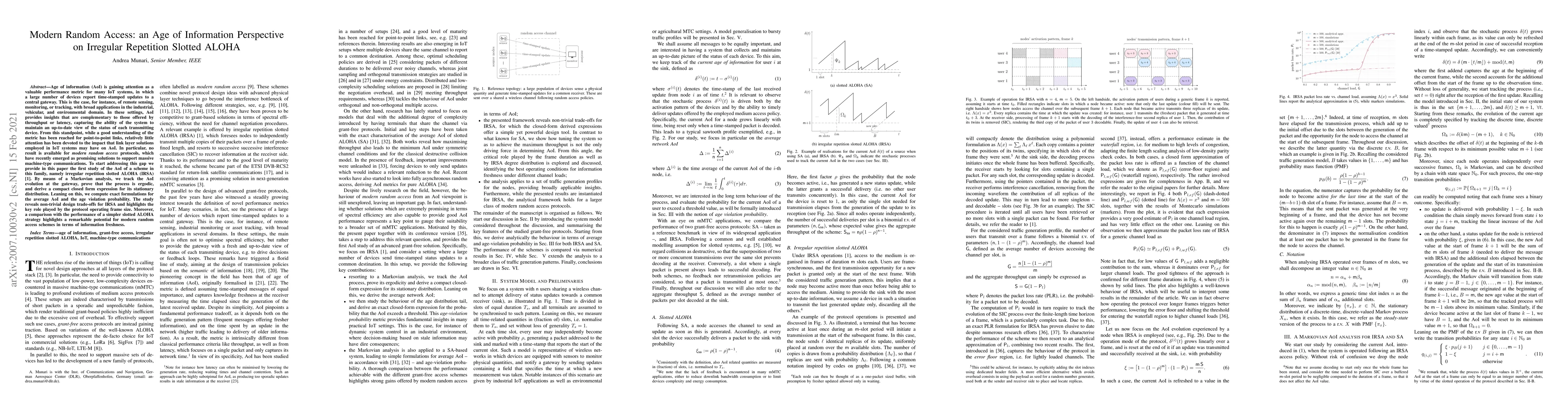 Age of information (AoI) is gaining attention as a valuable performance metric for many IoT systems, in which a large number of devices report time-stamped updates to a central gateway. This is the case, for instance, of remote sensing, monitoring, or tracking, with broad applications in the industrial, vehicular, and environmental domain. In these settings, AoI provides insights that are complementary to those offered by throughput or latency, capturing the ability of the system to maintain an up-to-date view of the status of each transmitting device. From this standpoint, while a good understanding of the metric has been reached for point-to-point links, relatively little attention has been devoted to the impact that link layer solutions employed in IoT systems may have on AoI. In particular, no result is available for modern random access protocols, which have recently emerged as promising solutions to support massive machine-type communications. To start addressing this gap we provide in this paper the first study of the AoI of a scheme in this family, namely irregular repetition slotted ALOHA (IRSA). By means of a Markovian analysis, we track the AoI evolution at the gateway, prove that the process is ergodic, and derive a compact closed form expression for its stationary distribution. Leaning on this, we compute exact formulations for the average AoI and the age violation probability. The study reveals non-trivial design trade-offs for IRSA and highlights the key role played by the protocol operating frame size. Moreover, a comparison with the performance of a simpler slotted ALOHA strategy highlights a remarkable potential for modern random access schemes in terms of information freshness.