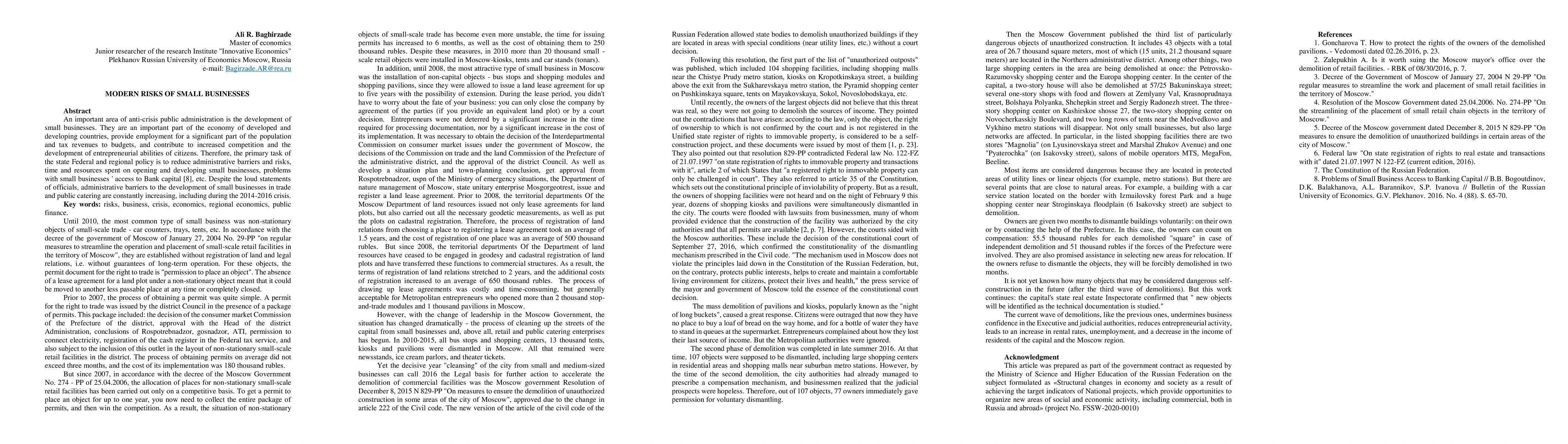 This paper examines the modern risks faced by small businesses, emphasizing the need for reduced administrative barriers and improved access to bank capital to support their growth and economic contribution. Despite official promises, small businesses continue to face increasing administrative hurdles, particularly during economic crises.