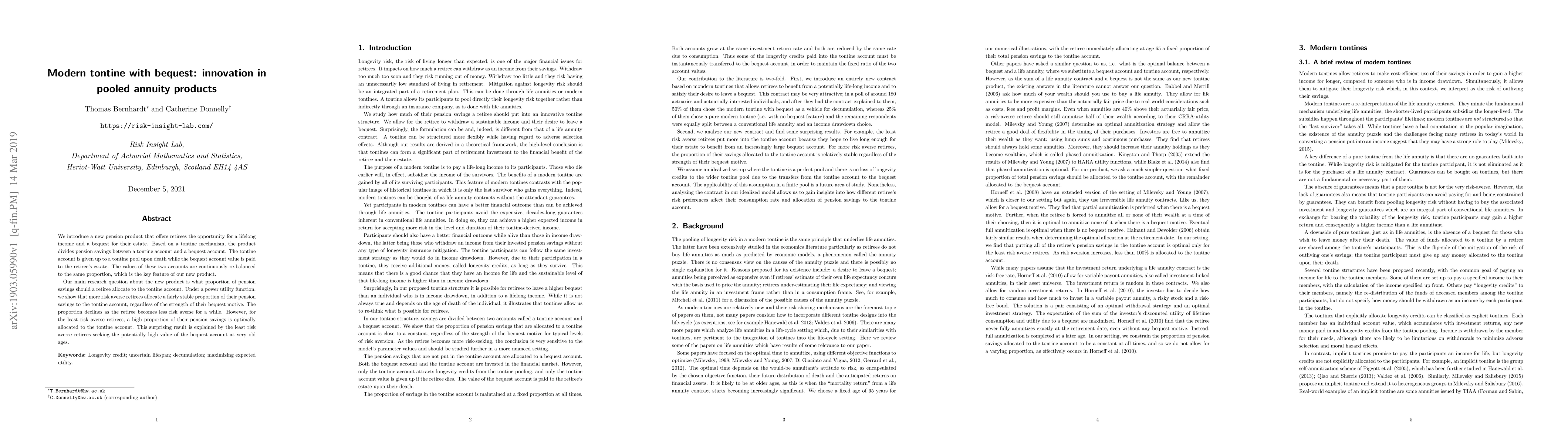 This paper introduces a modern tontine-based pension product that combines lifelong income with a bequest for retirees' estates. It finds that under a power utility function, risk averse retirees tend to allocate a stable proportion of their pension savings to the tontine account, while the least risk averse retirees may allocate a higher proportion to maximize potential bequest value.